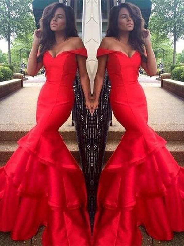 Off-The-Shoulder Taffeta With Layers Sweep/Brush Train Dresses
