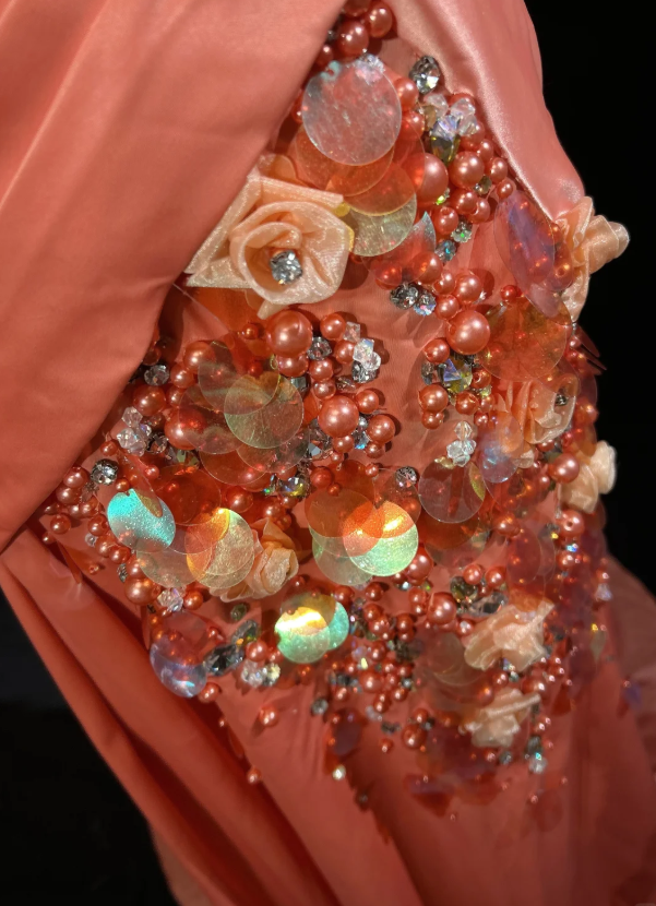 Bright Orange Mermaid V-Neck Satin Beaded Long Prom Dress Sequined Evening Gown  ED01582