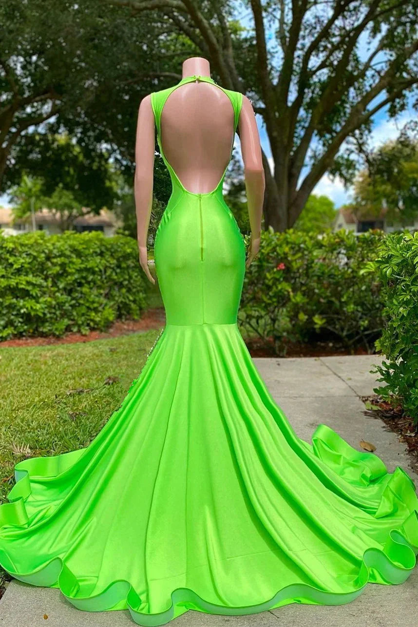 Budget Light Green V-Neck Mermaid Evening Gowns Lng Crystals Online