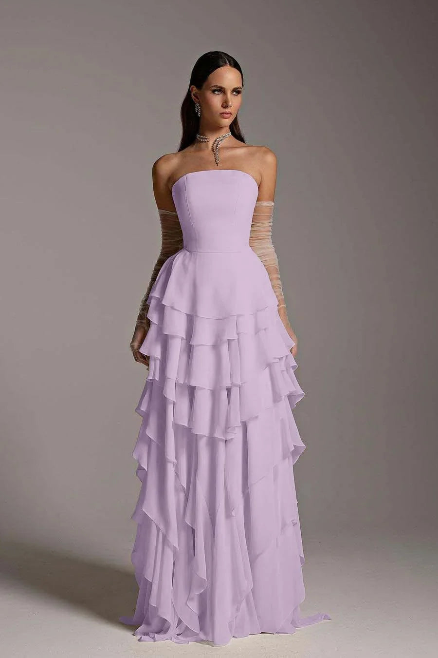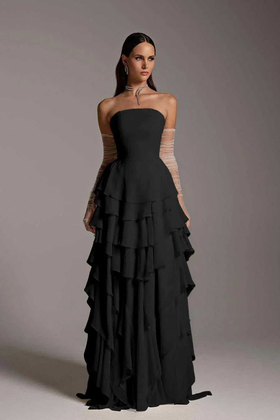 Charming Strapless Sleeveless Ruffles Long Prom Dress With Gloves