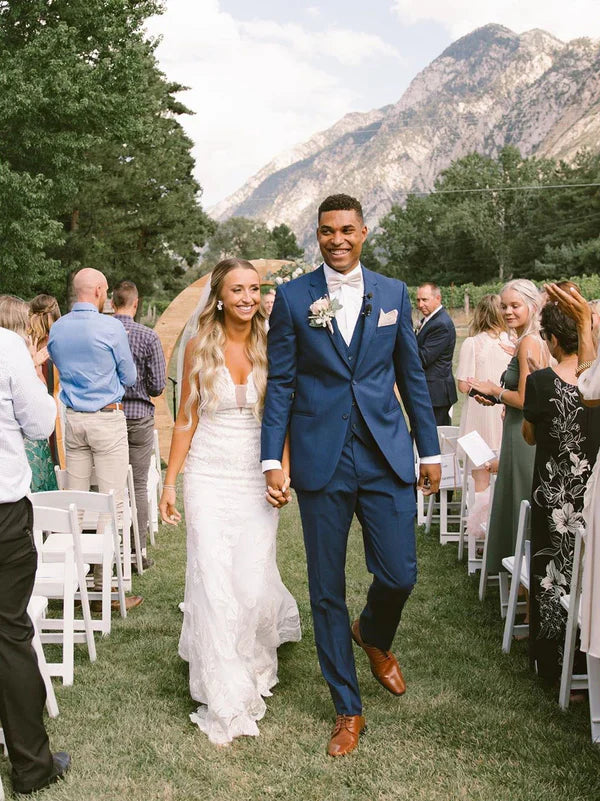 Charming V-Neck Lace Appliuqed Wedding Dresses Backless Bridal Gowns