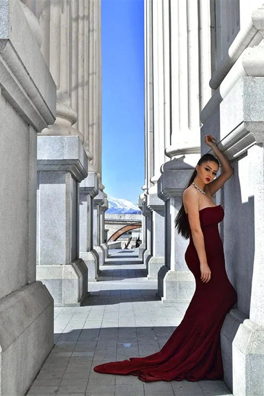 Chic Burgundy Strapless Mermaid Long Evening Prom Dress Online