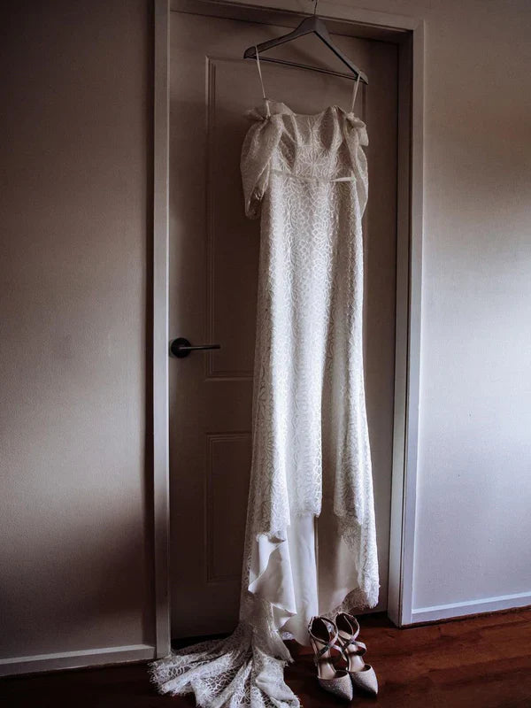 Chic Floral Lace Off-the-shoulder Sweep Train Sheath Wedding Dresses