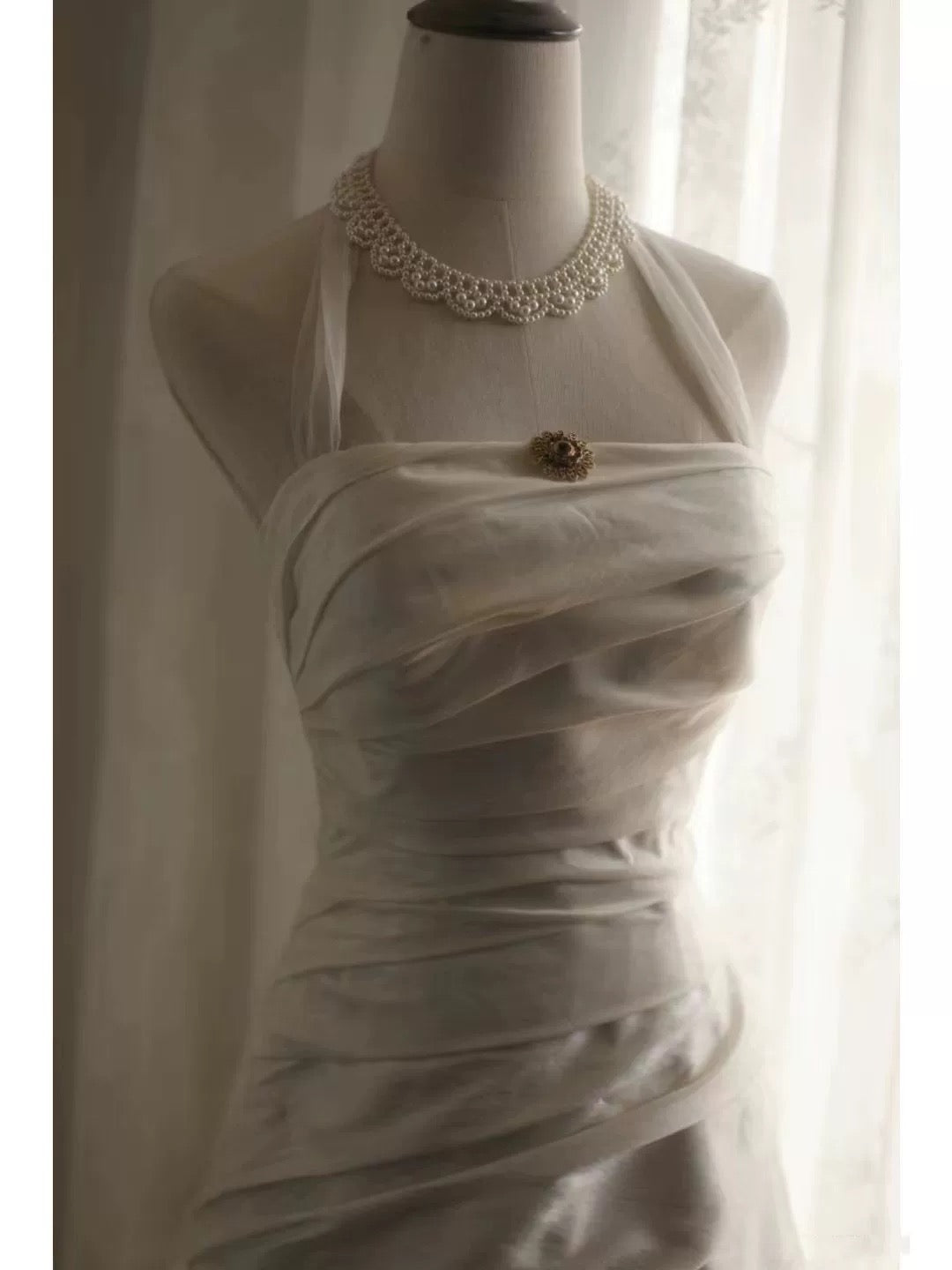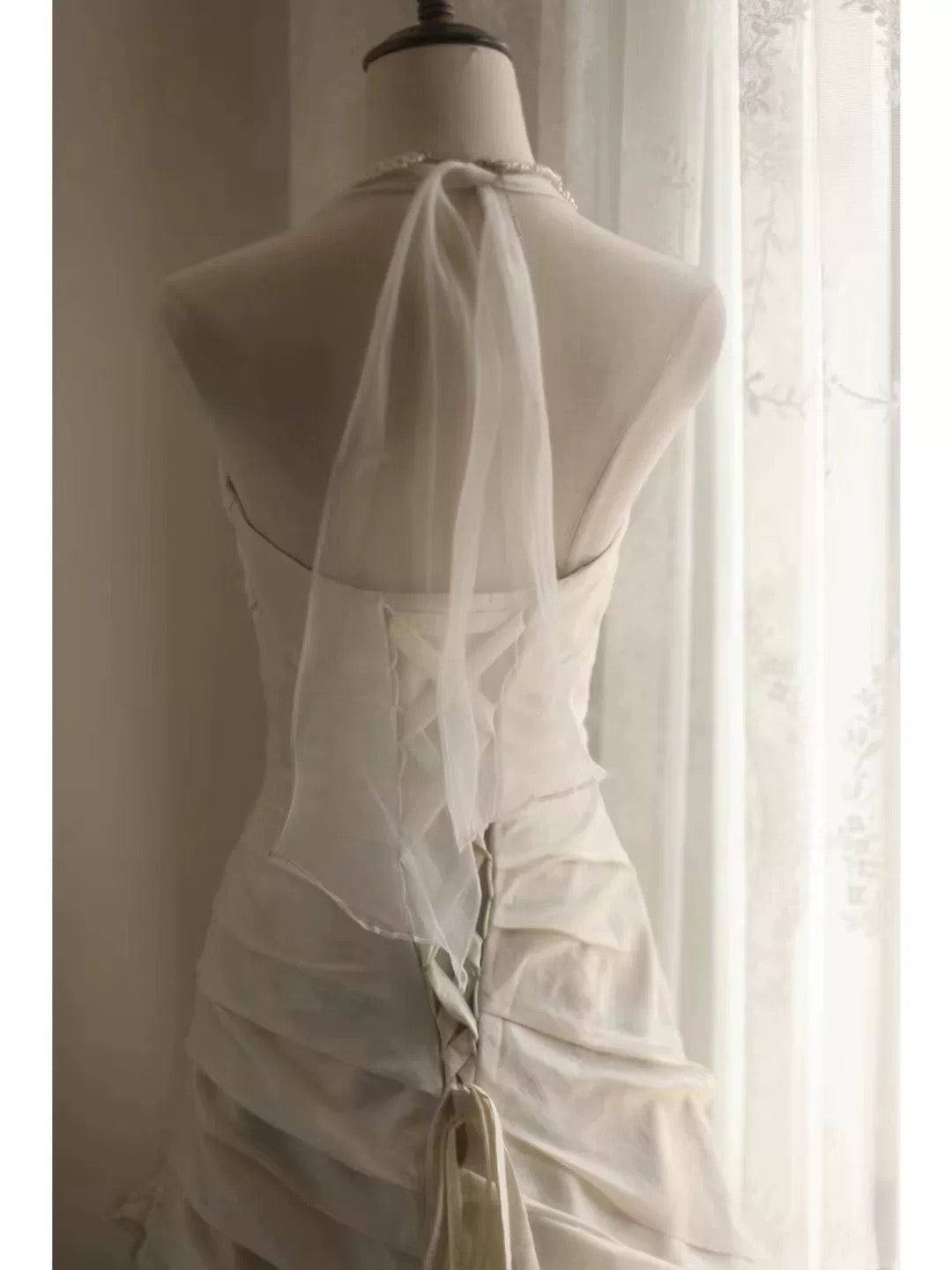 Chic Mermaid Halter Satin Ivory Long Wedding Dress Bridal Dresses SD2758