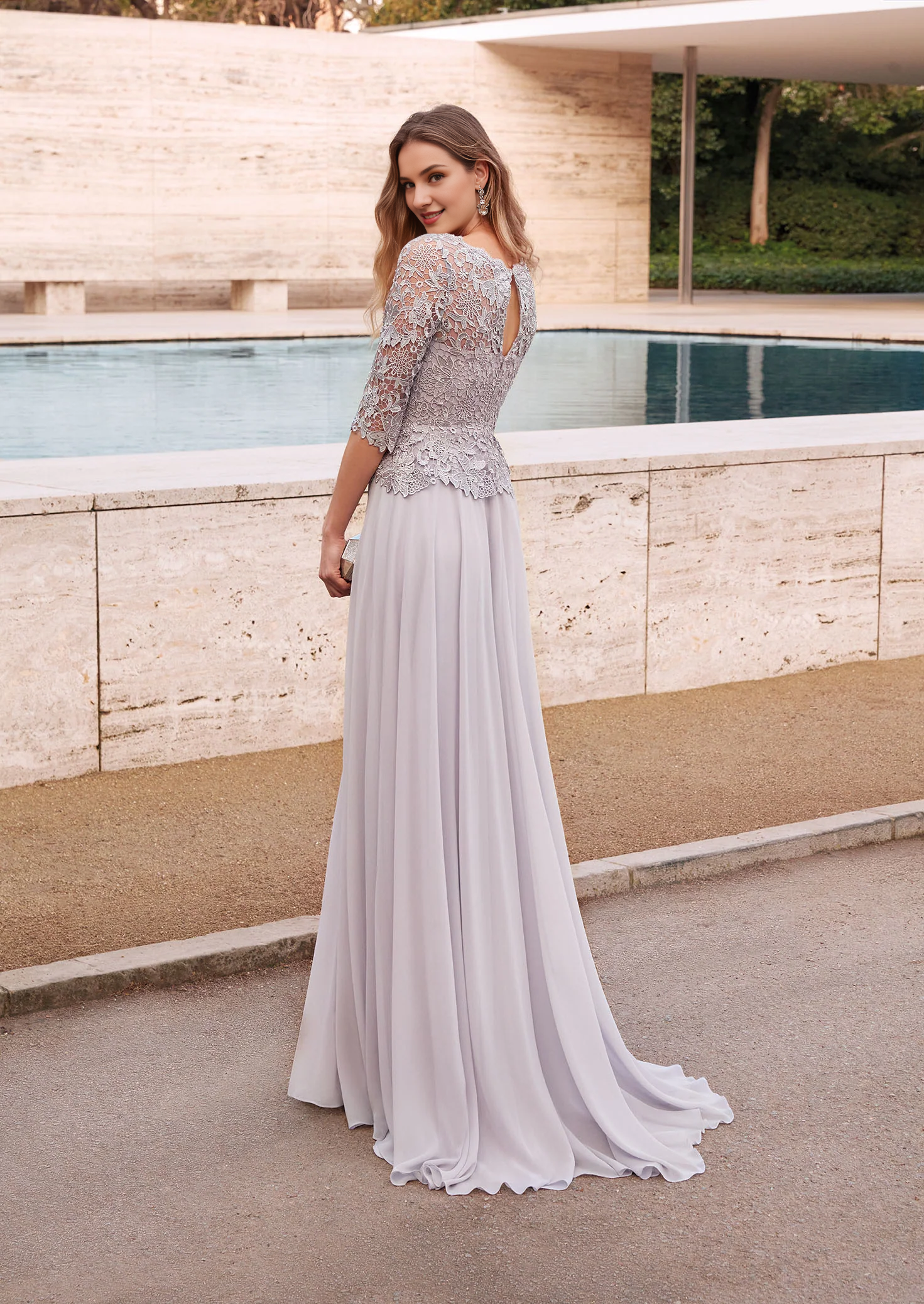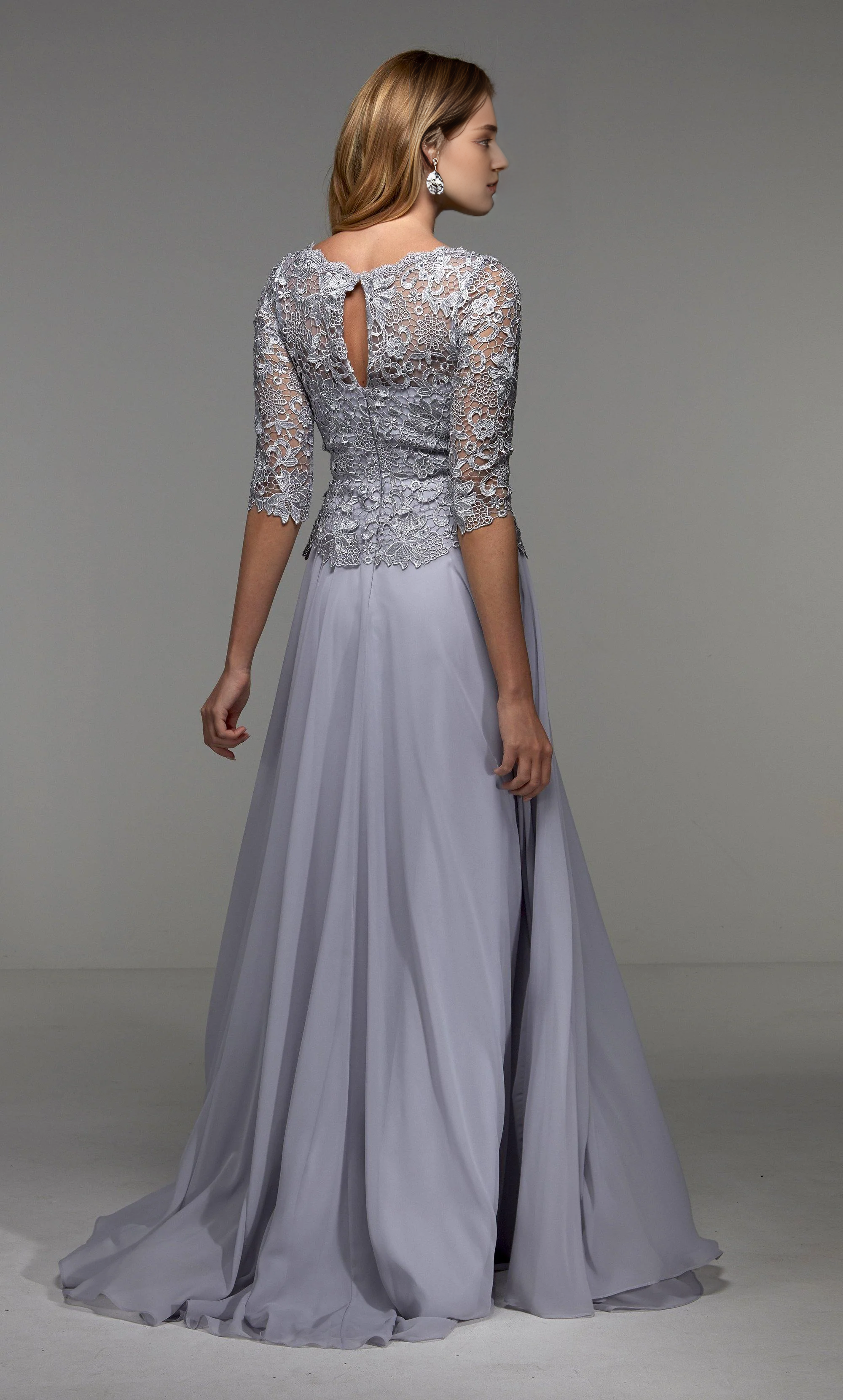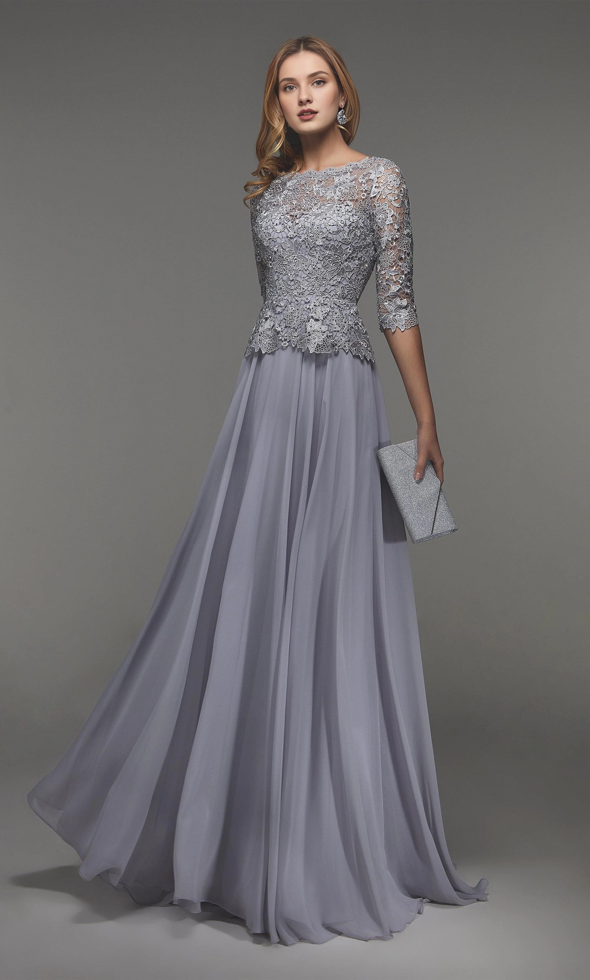 Chiffon lace phantom neckline lace ruffle top formal long mothers of the bride dresses
