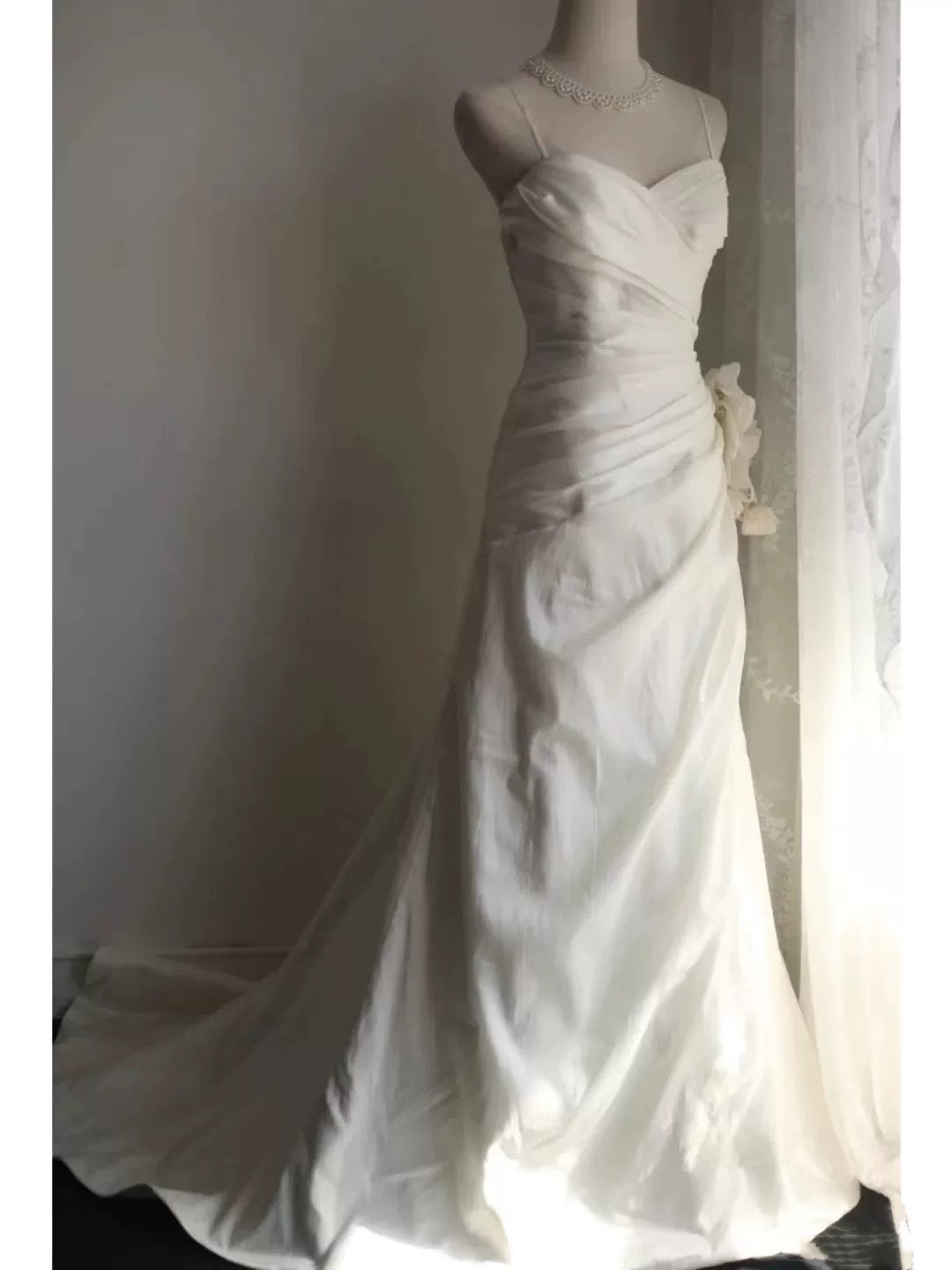 Classy Mermaid Spaghetti Straps White Satin Long Wedding Dress Bridal Dresses SD2764