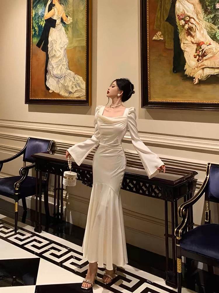 Classy Mermaid Square Neckline Long Sleeves Prom Dresses Birthday Outfits Evening Gown SD1010