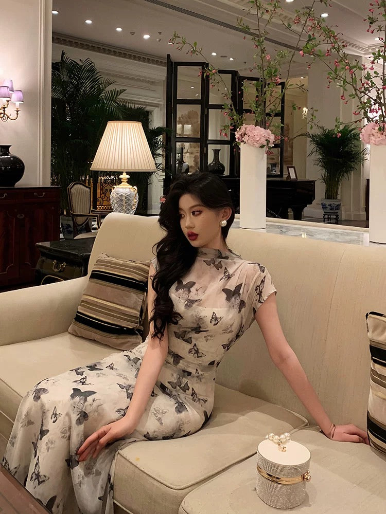 Long Tulle Prom Dress with 3D Butterflies Floor Length Formal Evening Party Gowns - Sage Green