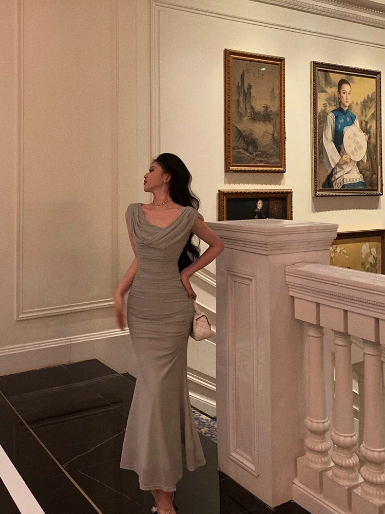 Occasion: Wedding Guest, Formal EveningStyle: Minimalist, VintageSilhouette: Sheath / ColumnHemline / Train: Floor LengthNeckline: V NeckFabric: VelvetClosure: Zipper UPSleeve Length: Long SleeveEmbellishment: Split, DrapingBuilt-In Bra: YesBoning: YesTips: Colors may vary slightly due to different monitor settings, Hand Wash Only