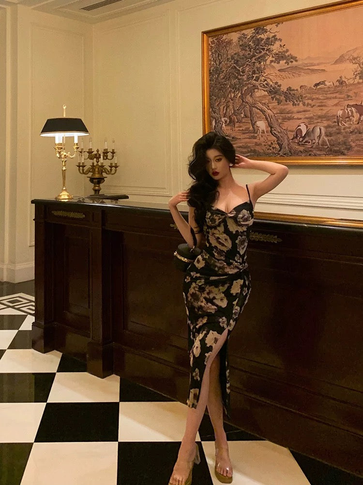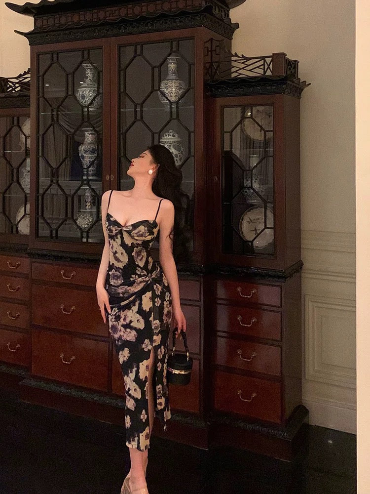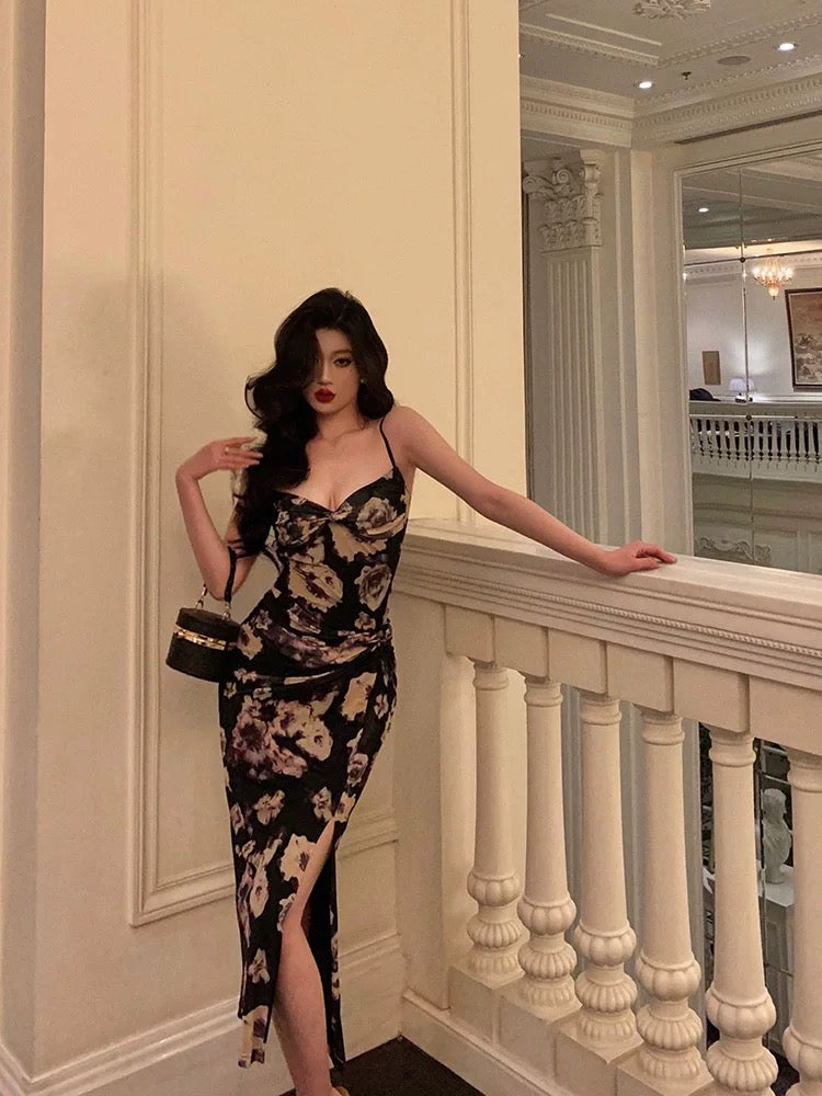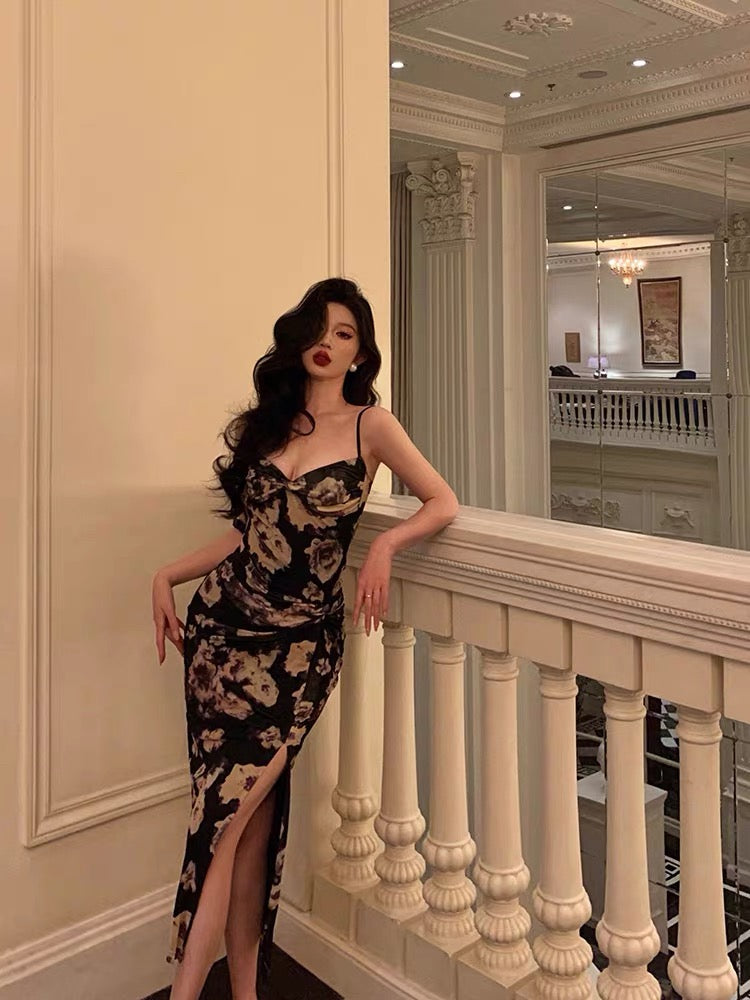 Classy Sheath Spaghetti Straps Floral Prom Dresses Birthday Outfits SD769