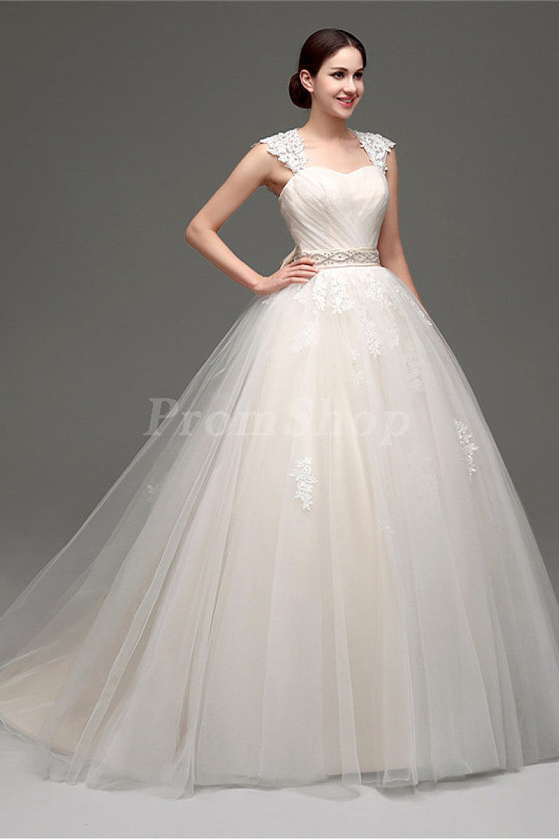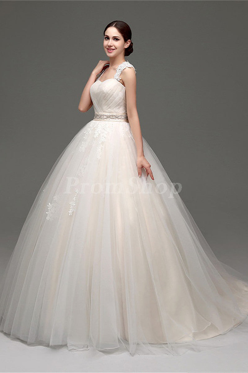 Silhouette: Princess, A-LineHemline / Train: Sweep / Brush TrainNeckline: Off ShoulderFabric: Tulle, LaceClosure: Zipper UPSleeve Length: Long SleeveWaistline: NaturalFully Lined: YesEmbellishment: AppliquesBuilt-In Bra: YesBoning: YesWedding Venues: ChurchTips: Professional dry cleaner only, Colors may vary slightly due to different monitor settingsTheme: Luxurious, RomanticWrap: No