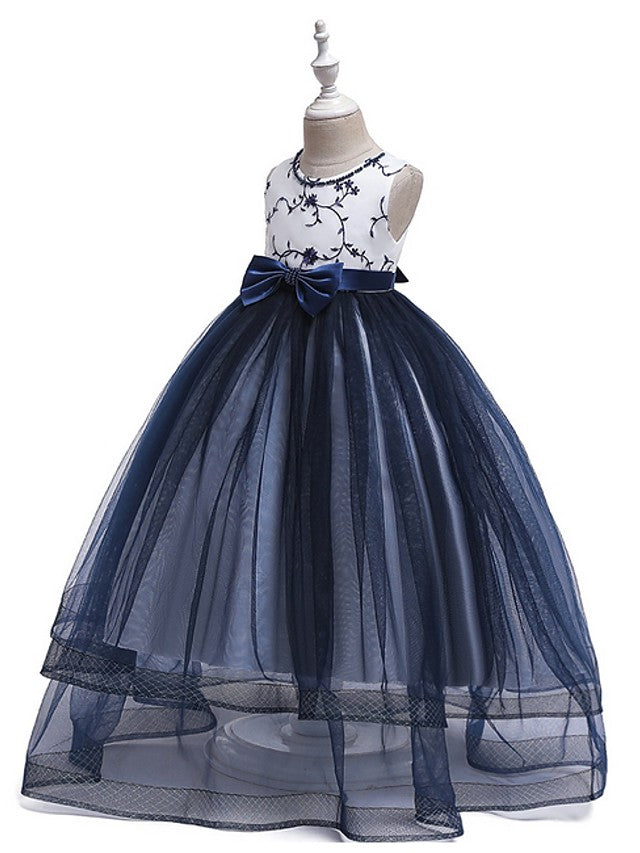 Daida Princess Jewel Sleeveless Flower Girl Dress with Bow and Tulle