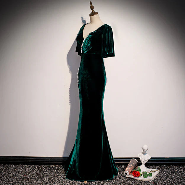 Dark Green Velvet Mermaid Slit V-neckline Formal Dress Party Dress Long Evening Dresses