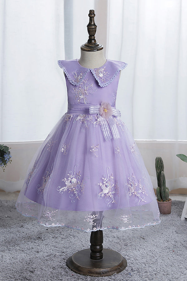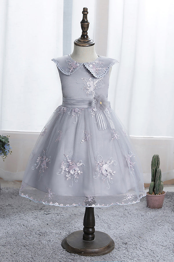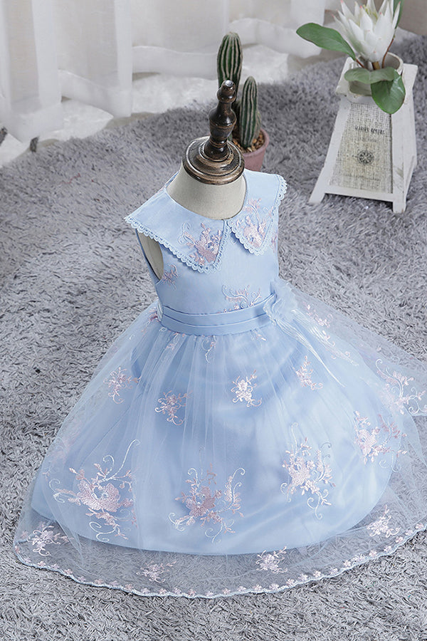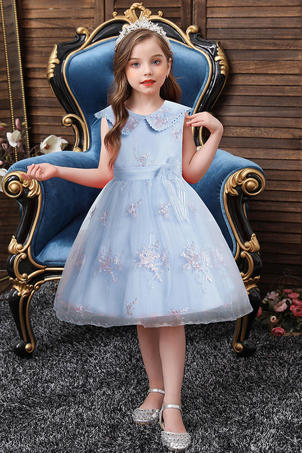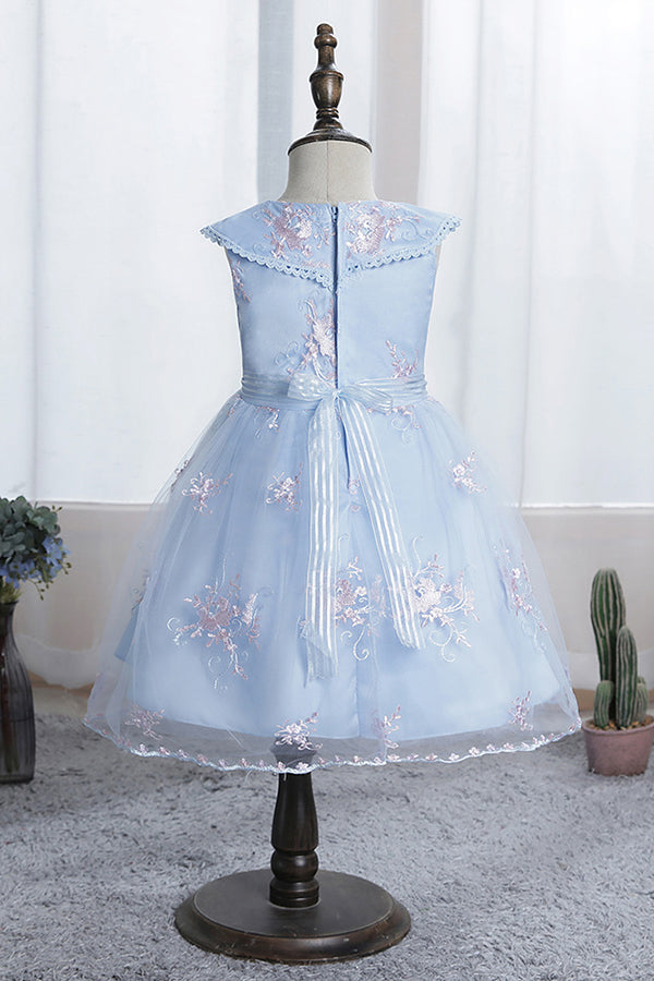 Dazzling Blue Appliques Tulle Knee Length Flower Girl Dress
