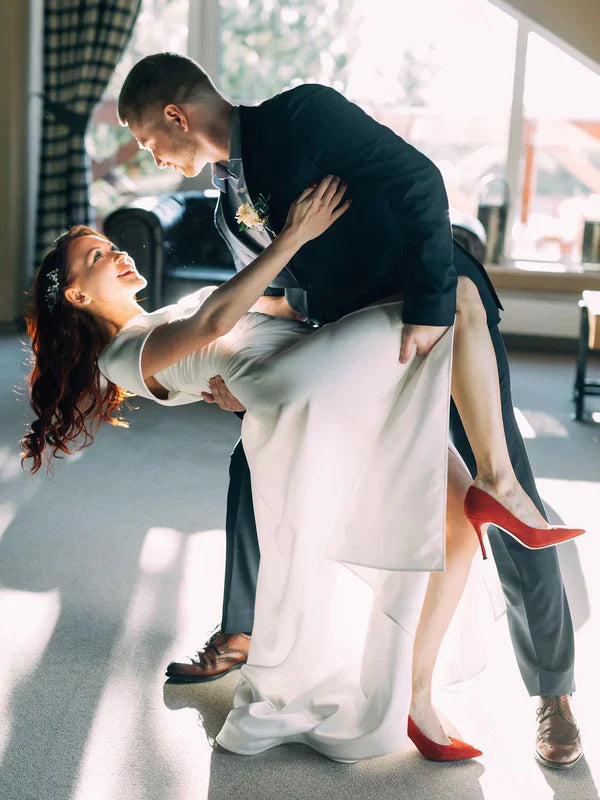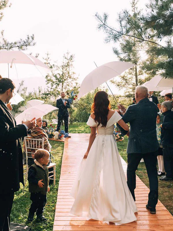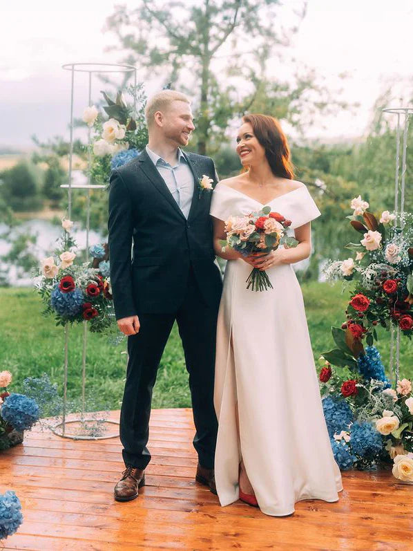 Delicate Satin Off-the-shoulder A-line Floor-Length Bridal Gowns