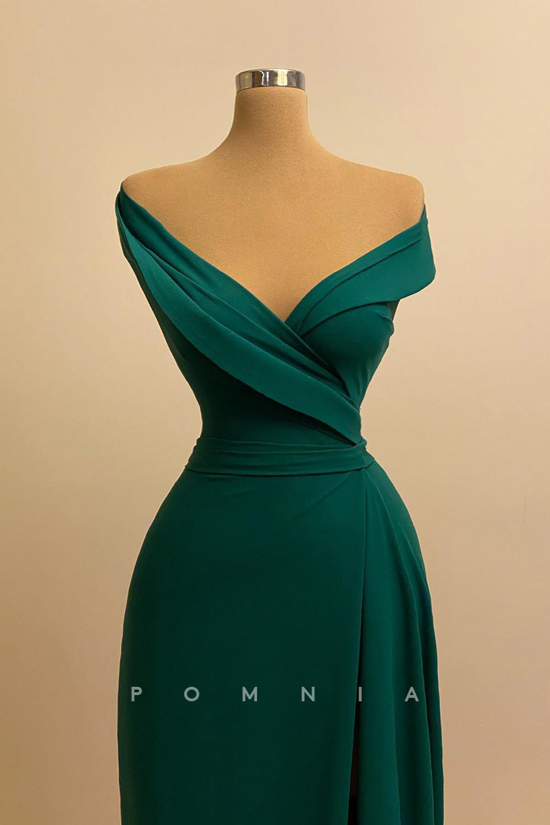 The P1438 Dress is perfect for your formal occasion. Its sophisticated off-shoulder V-neck and sheath design flatter all body shapes. Constructed from luxurious satin, the side-split hemline creates an elegant flowing silhouette. Look stunning and feel confident for any special event.