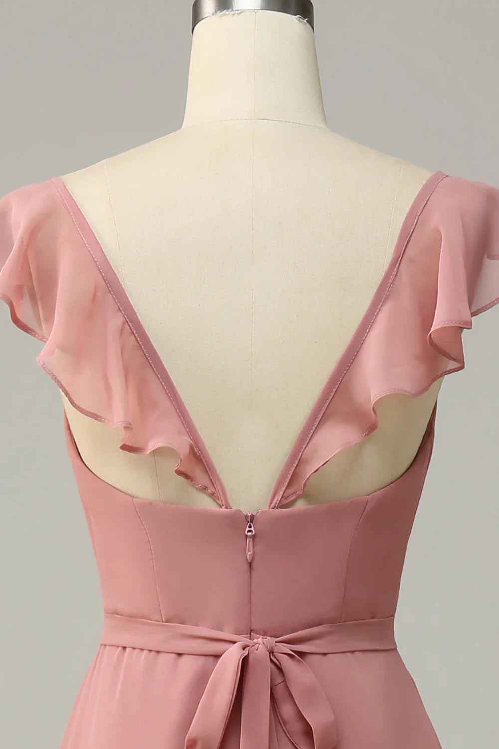 Dusty Rose A Line Ruffles Long Chiffon Bridesmaid Dress With Slit