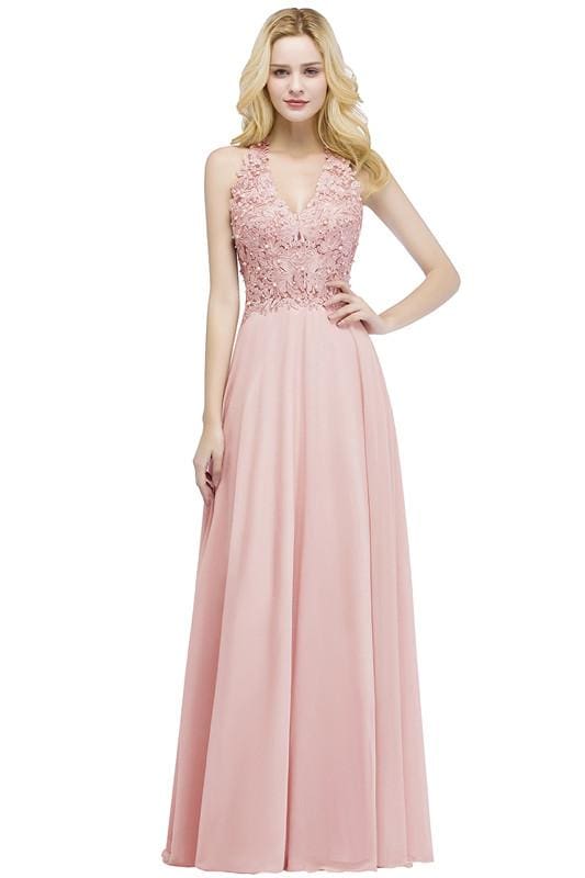 Dusty Rose Evening Dress Lace Chiffon Long Bridesmaid Dresses