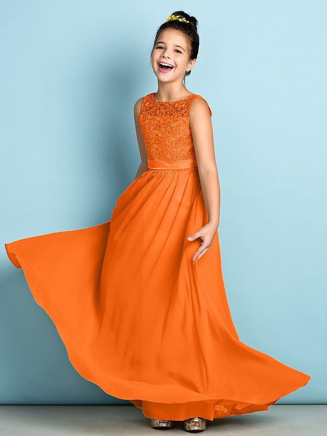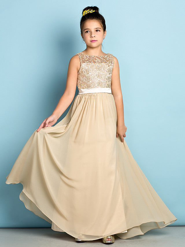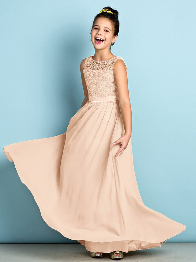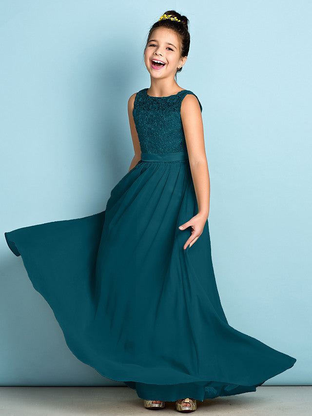 Elegant A-Line Floor Length Lace Junior Bridesmaid Dress