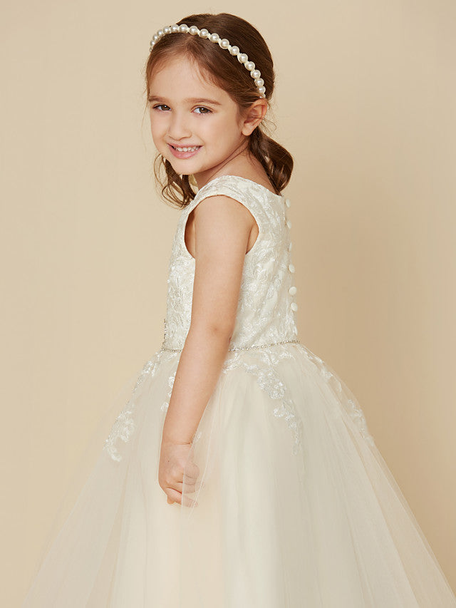 Princess A-Line Wedding Dresses Off Shoulder Sweep / Brush Train Lace Tulle Long Sleeve Romantic Luxurious with Appliques - Ivory
