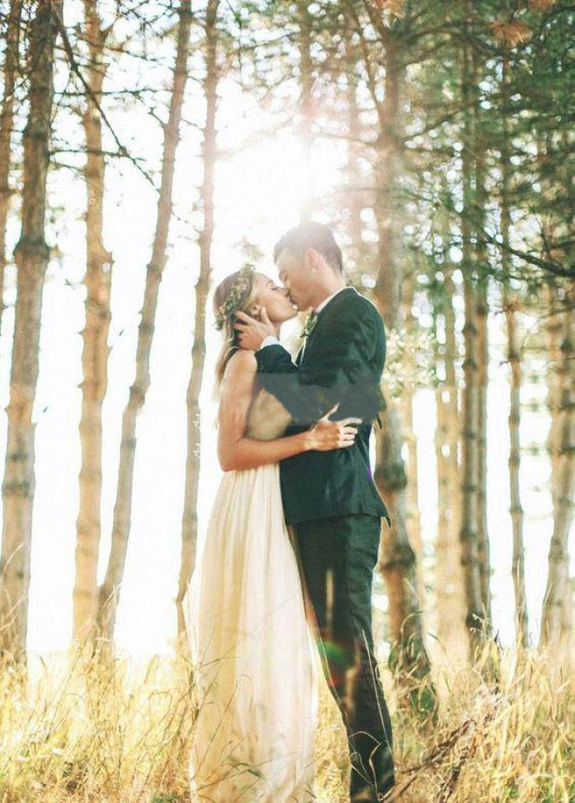 Armelia | Elegant Bohemian Sleeveless Long A Line Chiffon Wedding Dresses