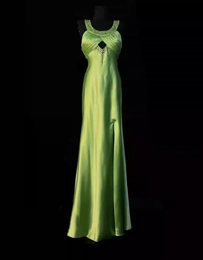 Elegant Green Vintage Beading Long Prom Dress Formal Party Dress