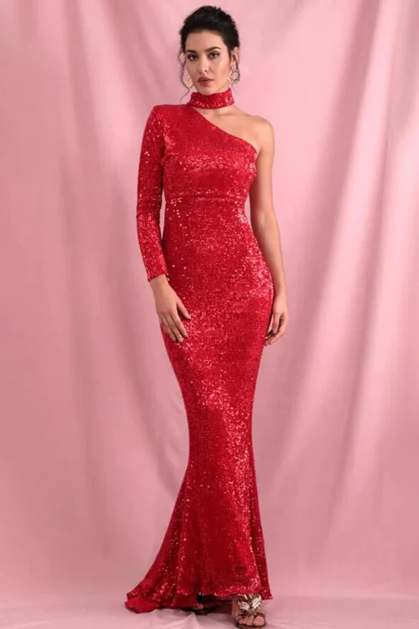 Elegant High-Neck Sequins Prom Dress Mermaid Long Sleeve Evening Gowns