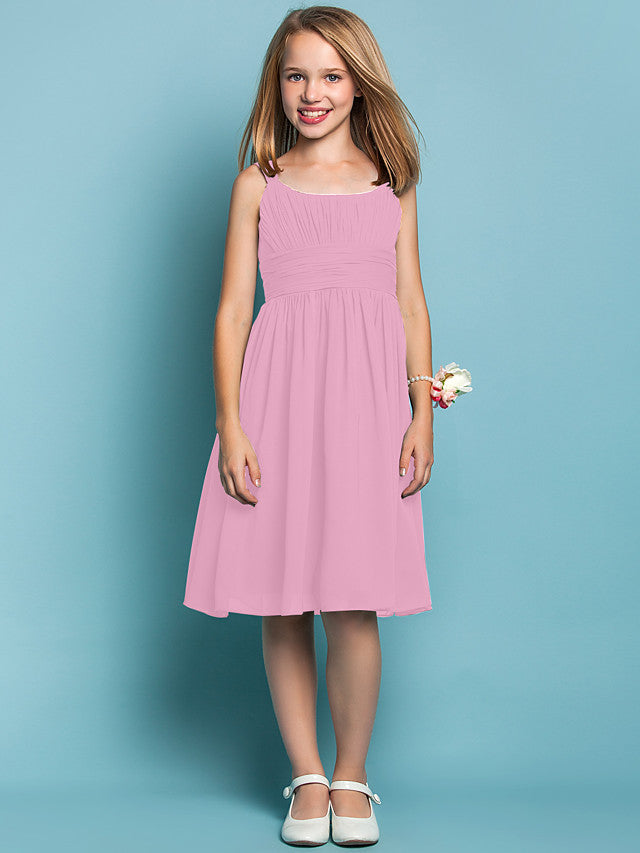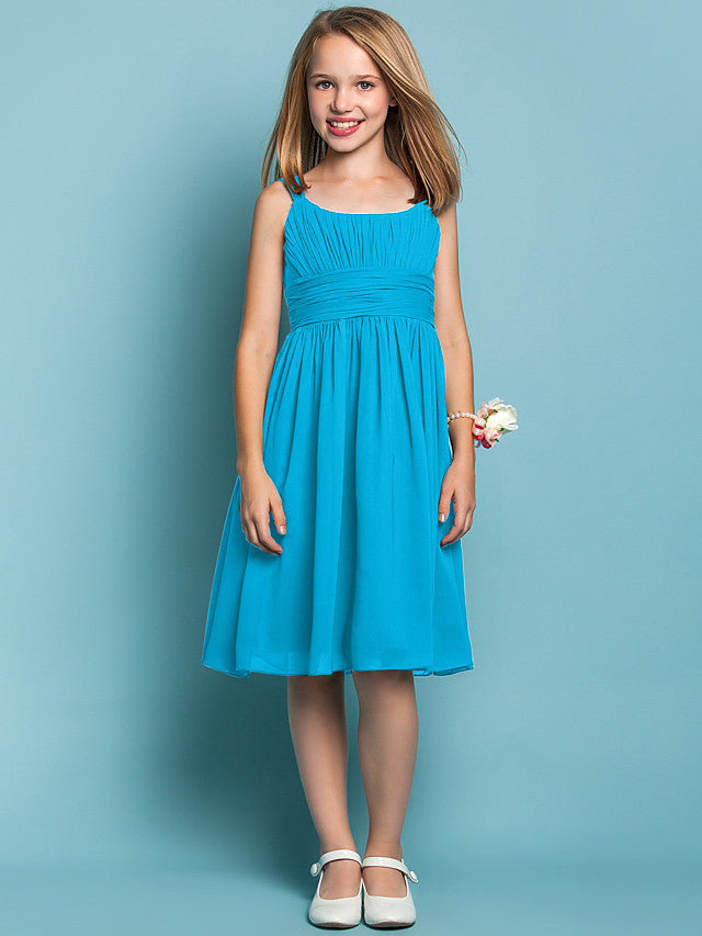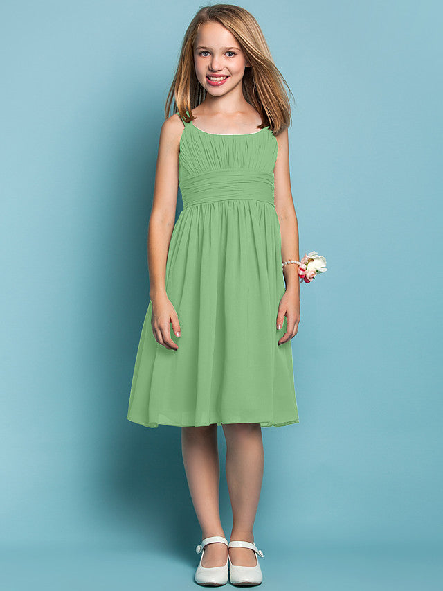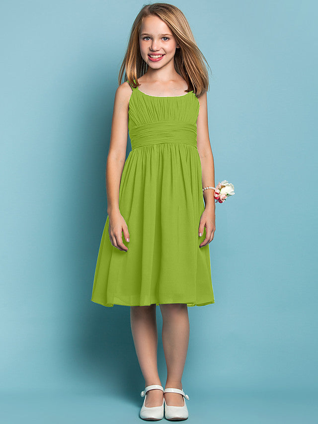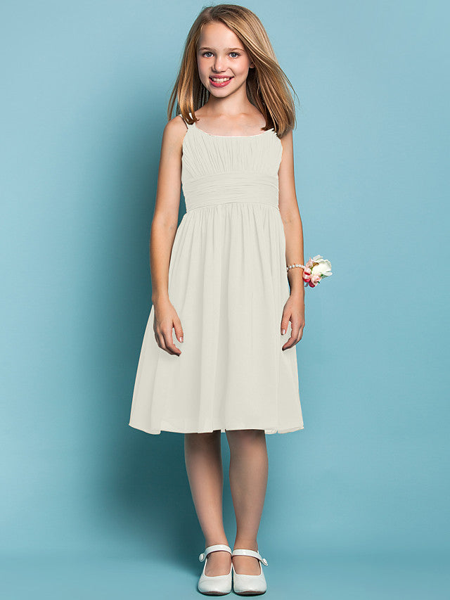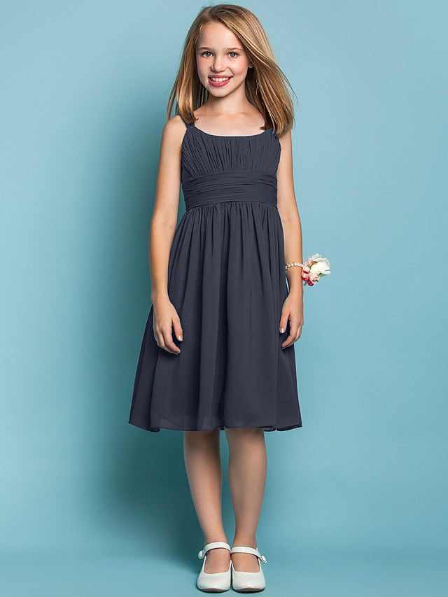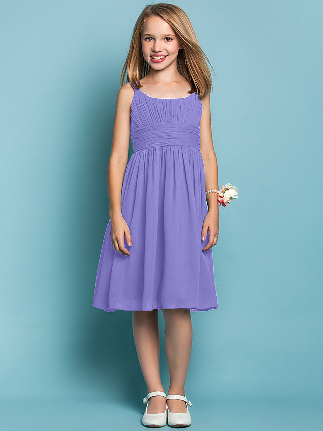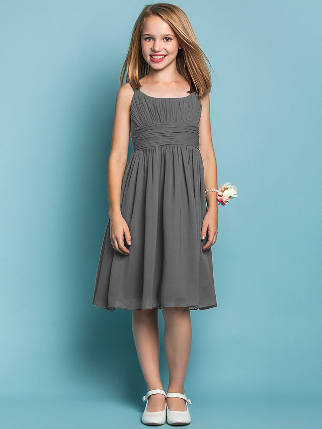Elegant Knee-Length Chiffon Flower Girl Dress with Sheath Column Straps and Ruched Draping
