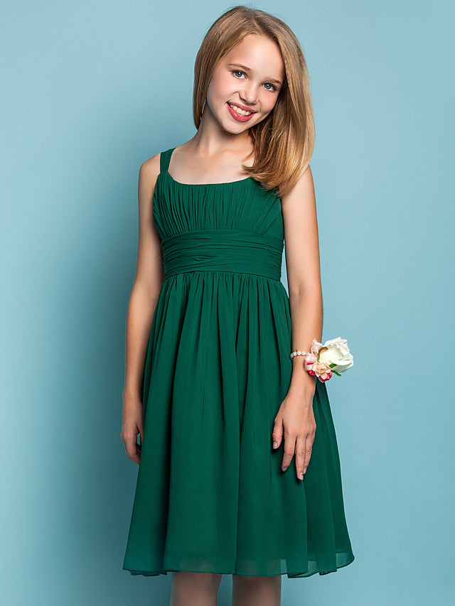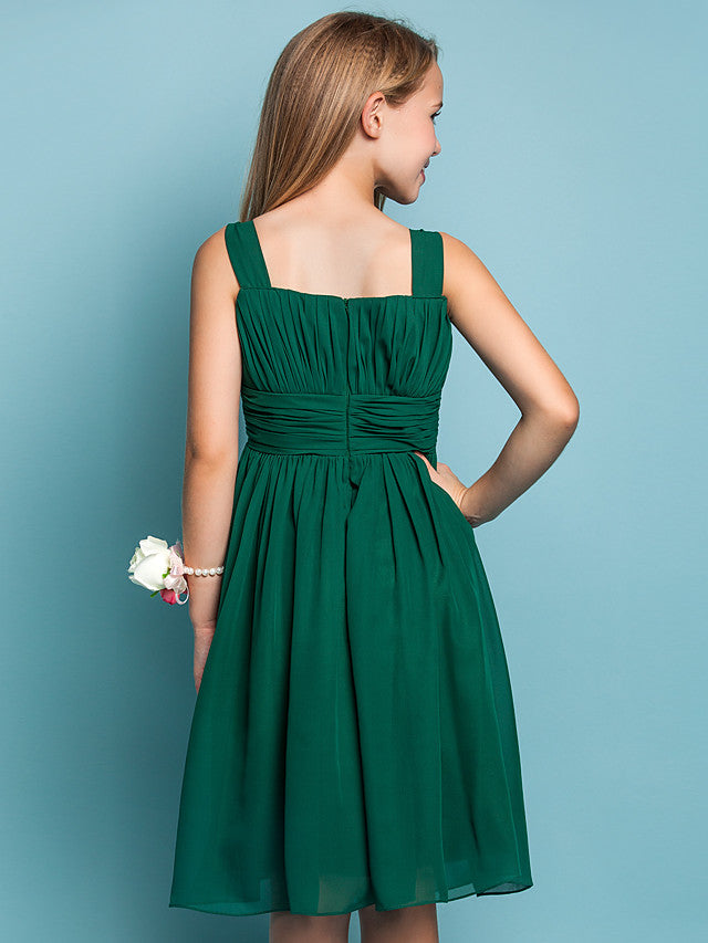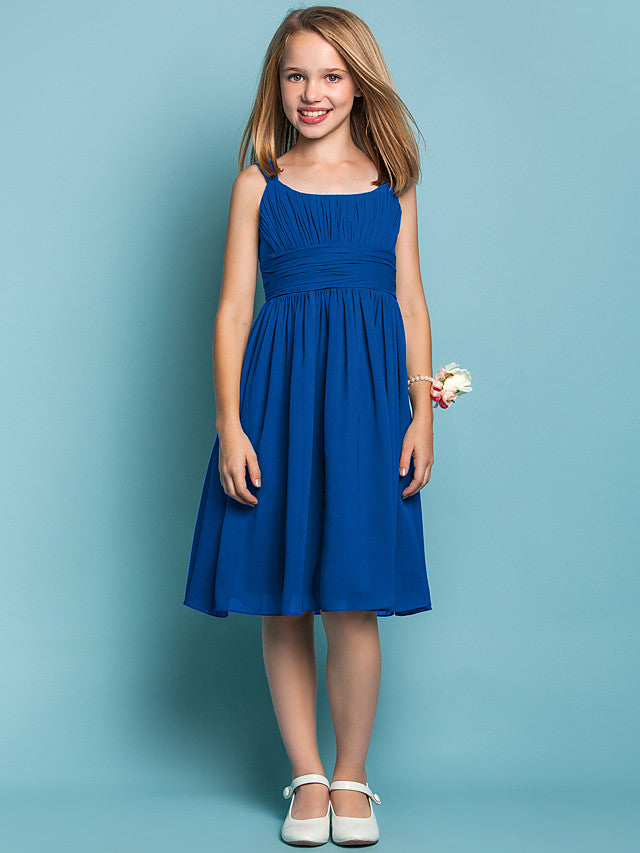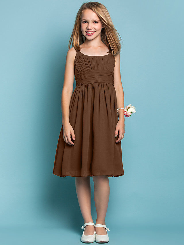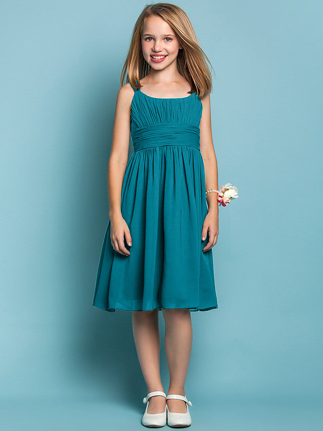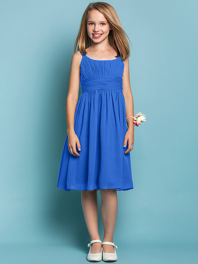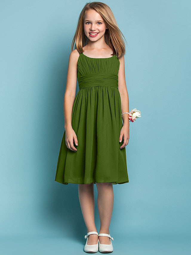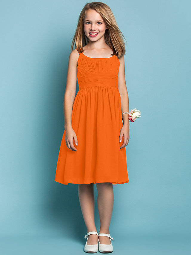 Elegant Knee-Length Chiffon Flower Girl Dress with Sheath Column Straps and Ruched Draping