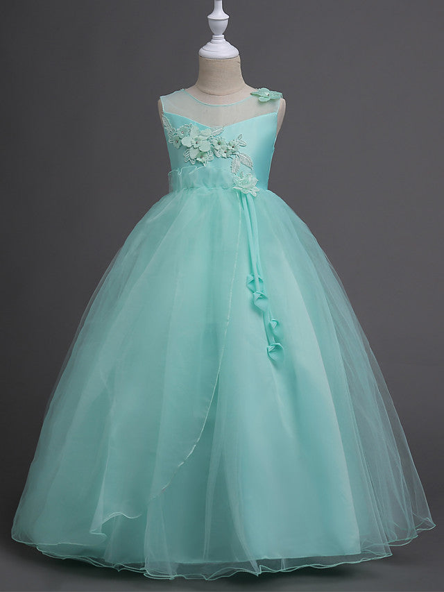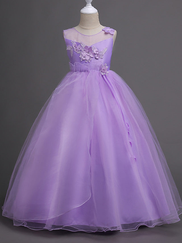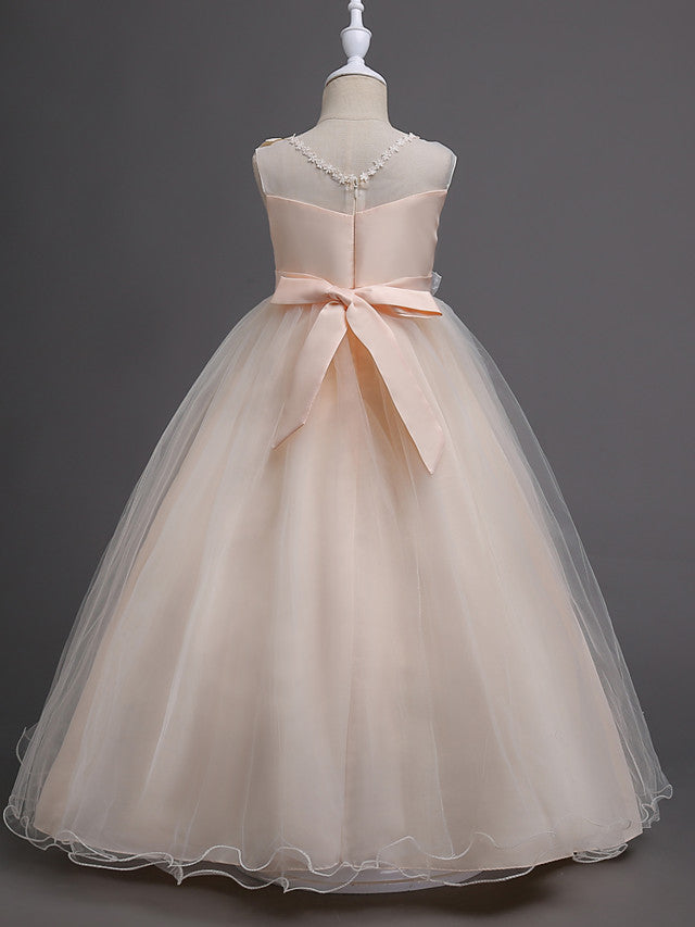 Elegant Lace Bow Appliques Floor Length Sleeveless Flower Girl Dresses