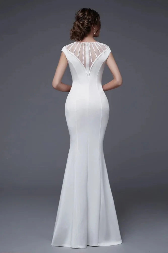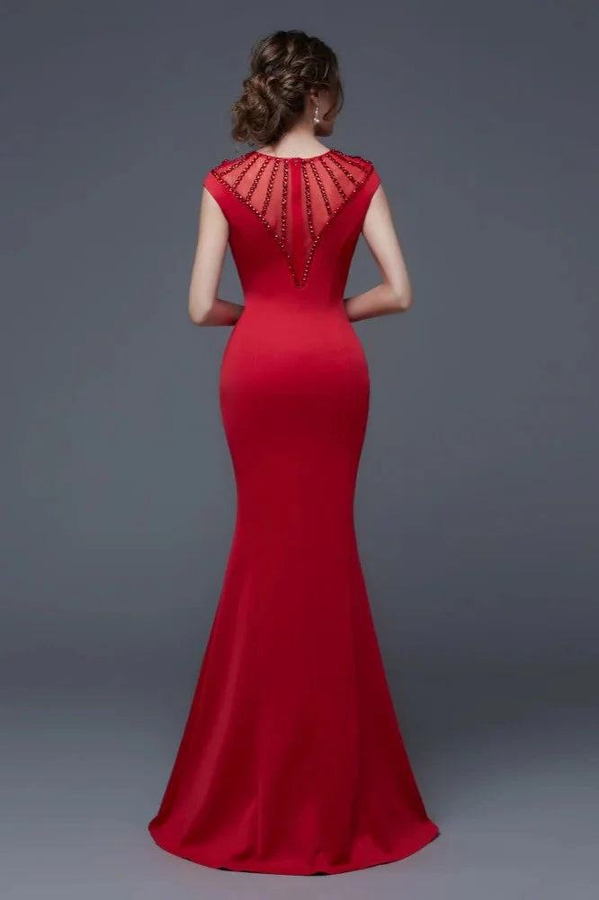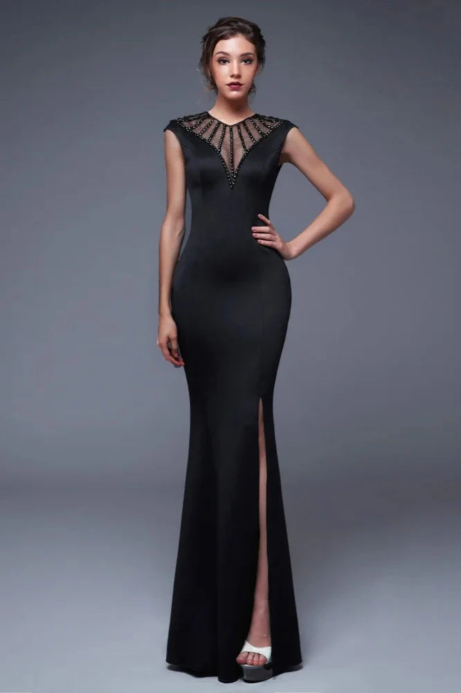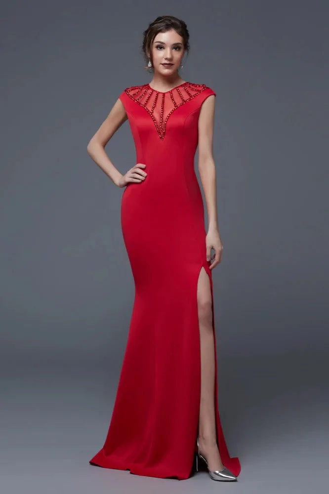 Elegant Scoop Mermaid Evening Gowns Long Split Prom Dress With Beadings