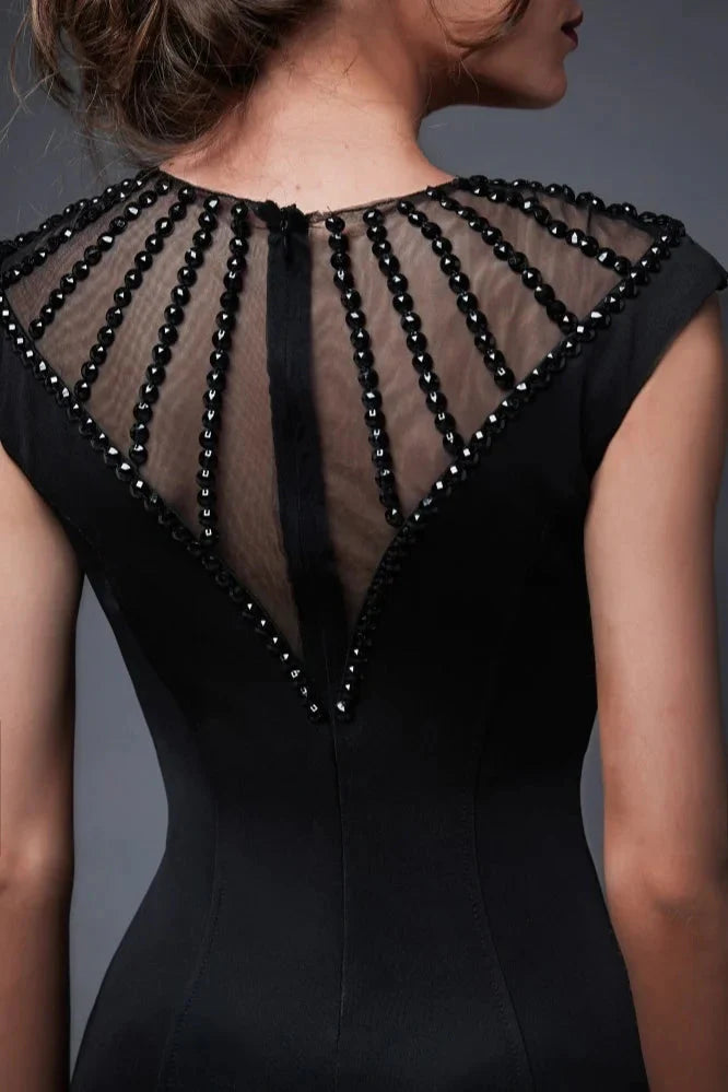 Style: ElegantSilhouette: Sheath / ColumnHemline / Train: Knee LengthNeckline: Jewel NeckFabric: SatinClosure: Zipper UPSleeve Length: Short SleeveEmbellishment: AppliquesTips: Colors may vary slightly due to different monitor settings, Hand Wash OnlyWrap: No