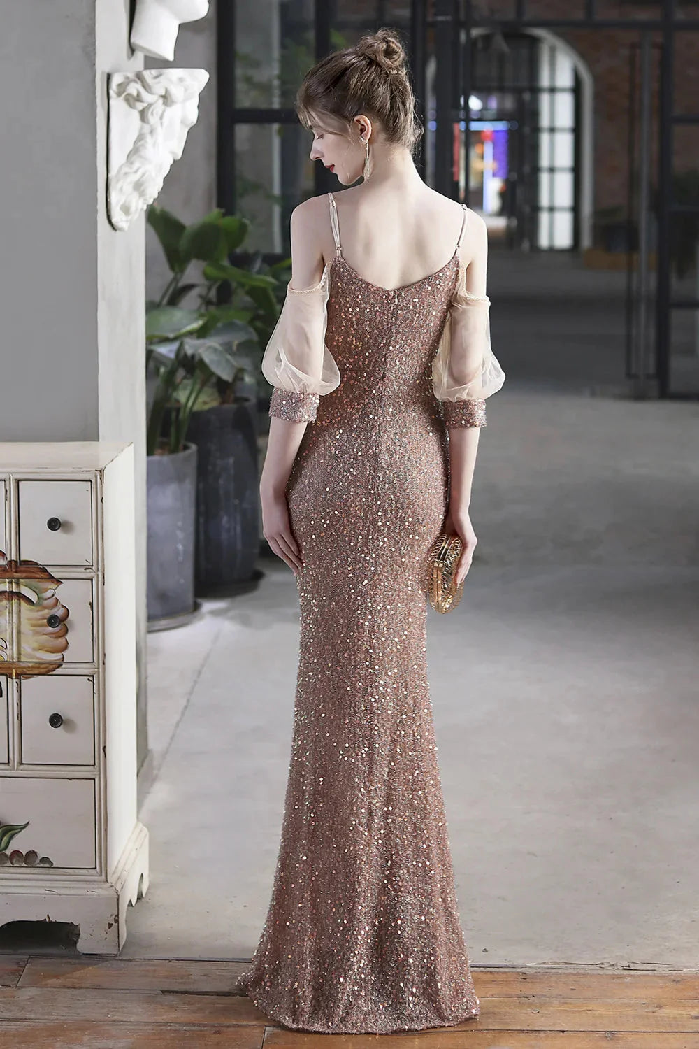 Item Details:  Product Number : cg24836 Fabric:Sequin Sleeves:Sleeveless Back Style:Zipper Built-in Bra: Yes