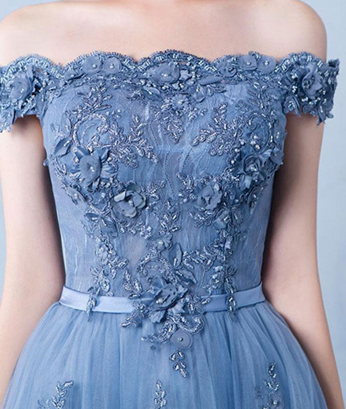 Blue A line tulle sequin long prom dress, blue tulle evening dress - picture color