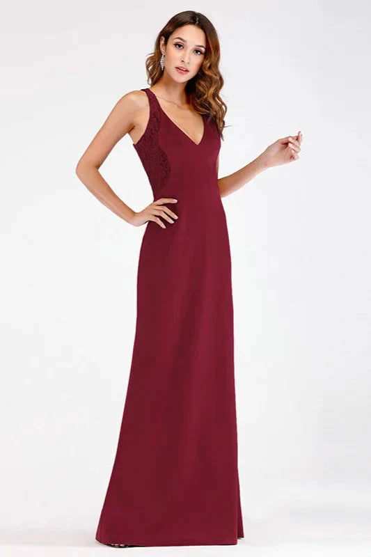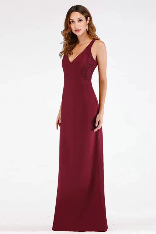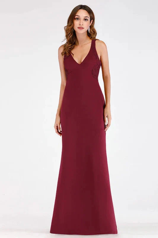 Elegant V-neck Burgundy Mermaid Lace Evening Gowns