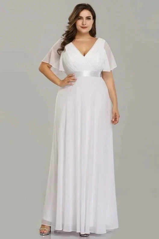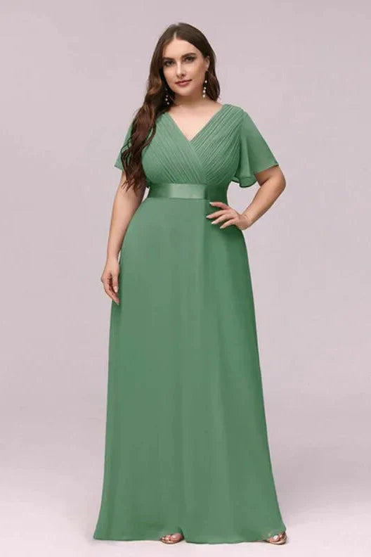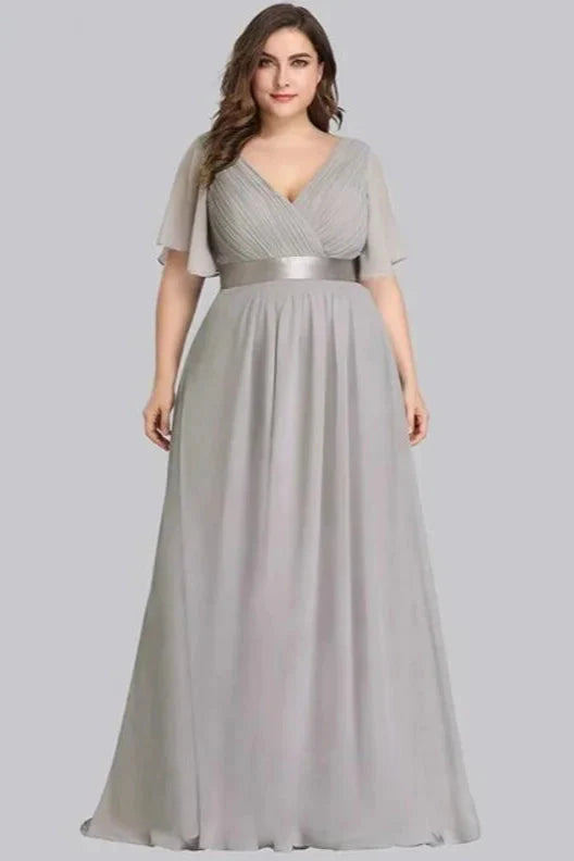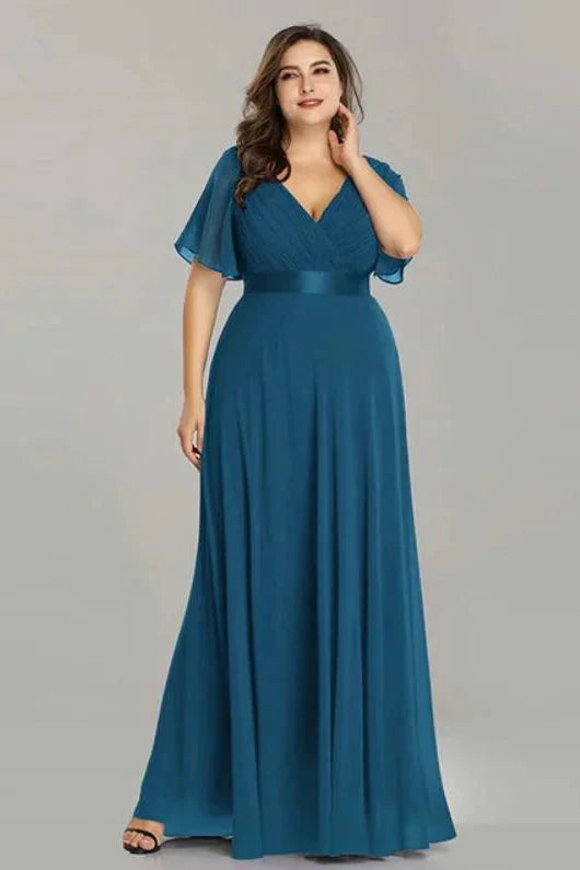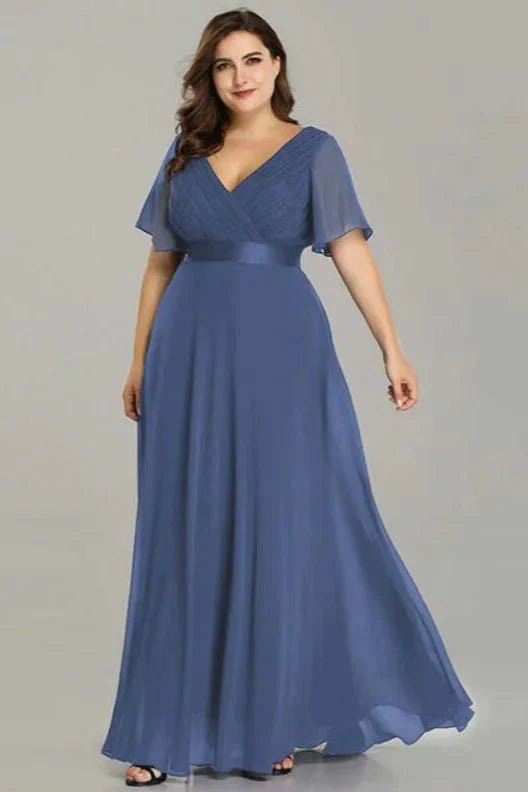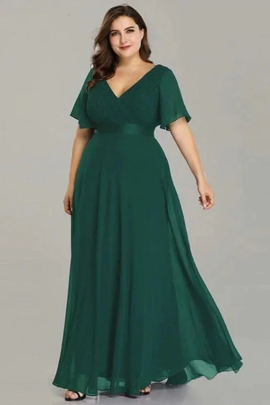 Elegant V-Neck Plus Size Chiffon Evening Dress With Short Sleeves