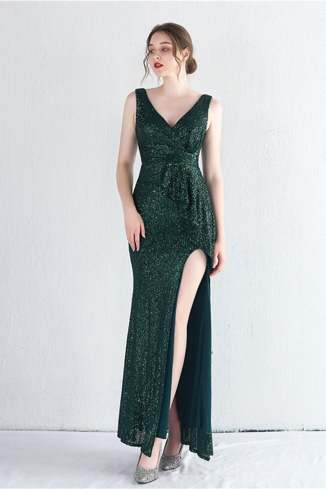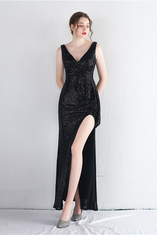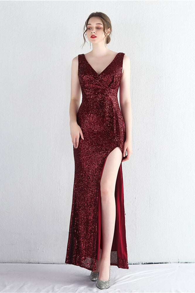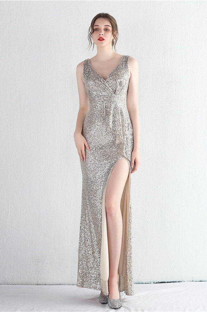 Elegant V-Neck Sleeveless Split Evening Dress With Sequins Online