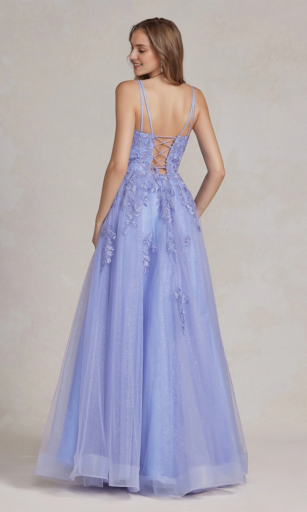 Embroidered lace corset and floor length dress