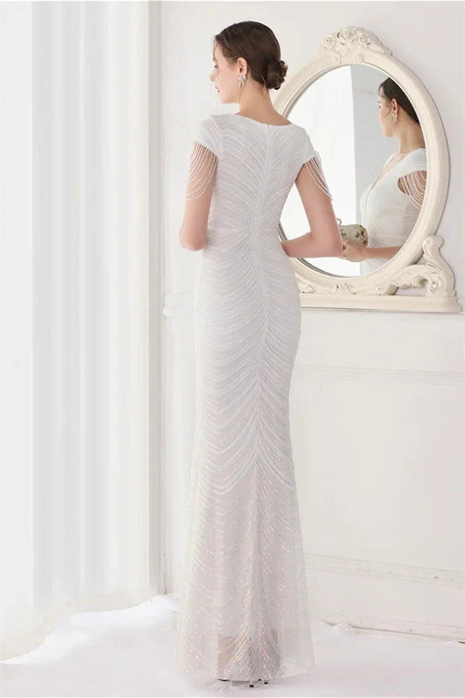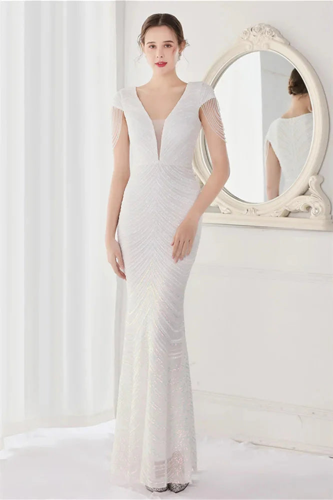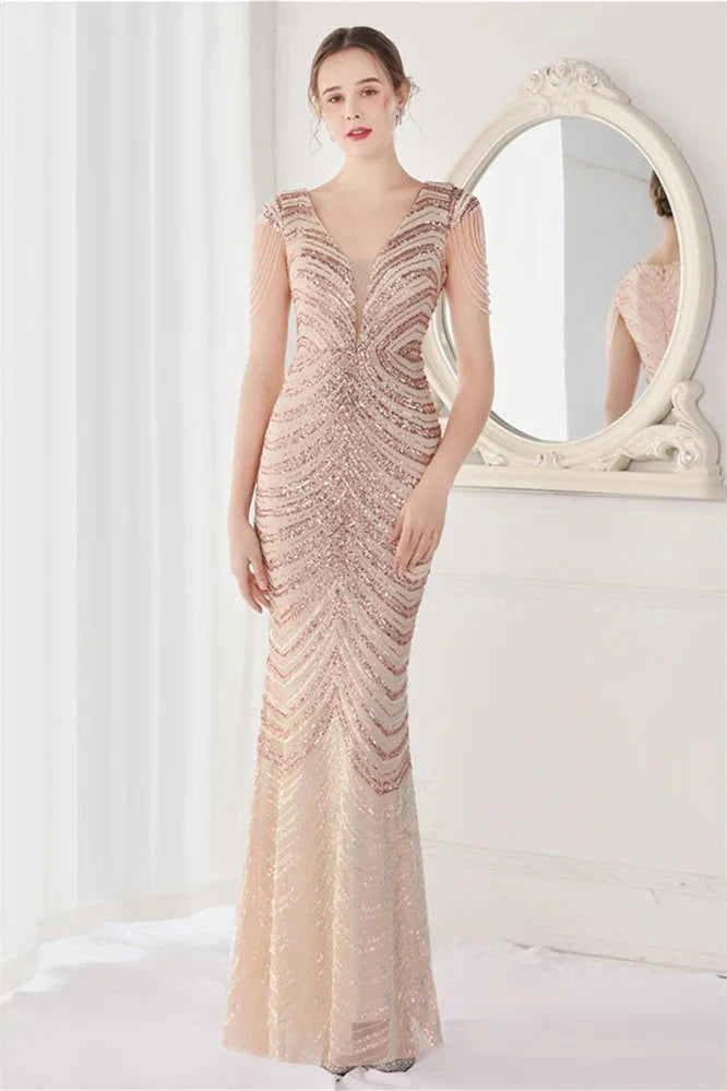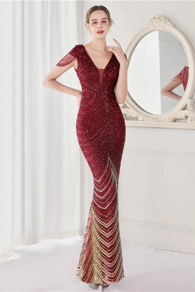 Fabulous Cap Sleeves V-Neck Evening Dress Mermaid Sequins Online