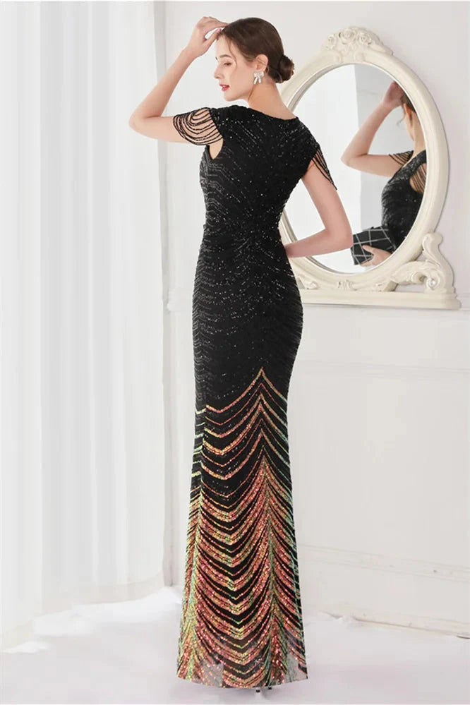Women's Elegant Sequin Maxi Evening Dress - Black