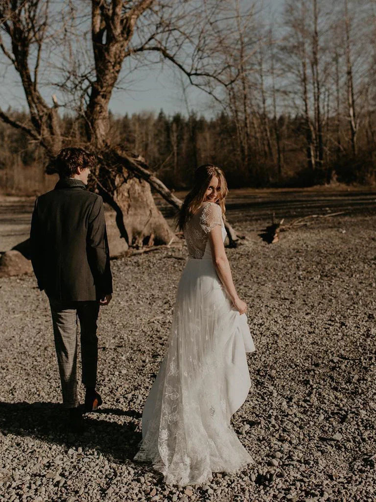 Fabulous Tulle Appliqued Mermaid V-Neck Cap Sleeves Sweep Train Wedding Dresses