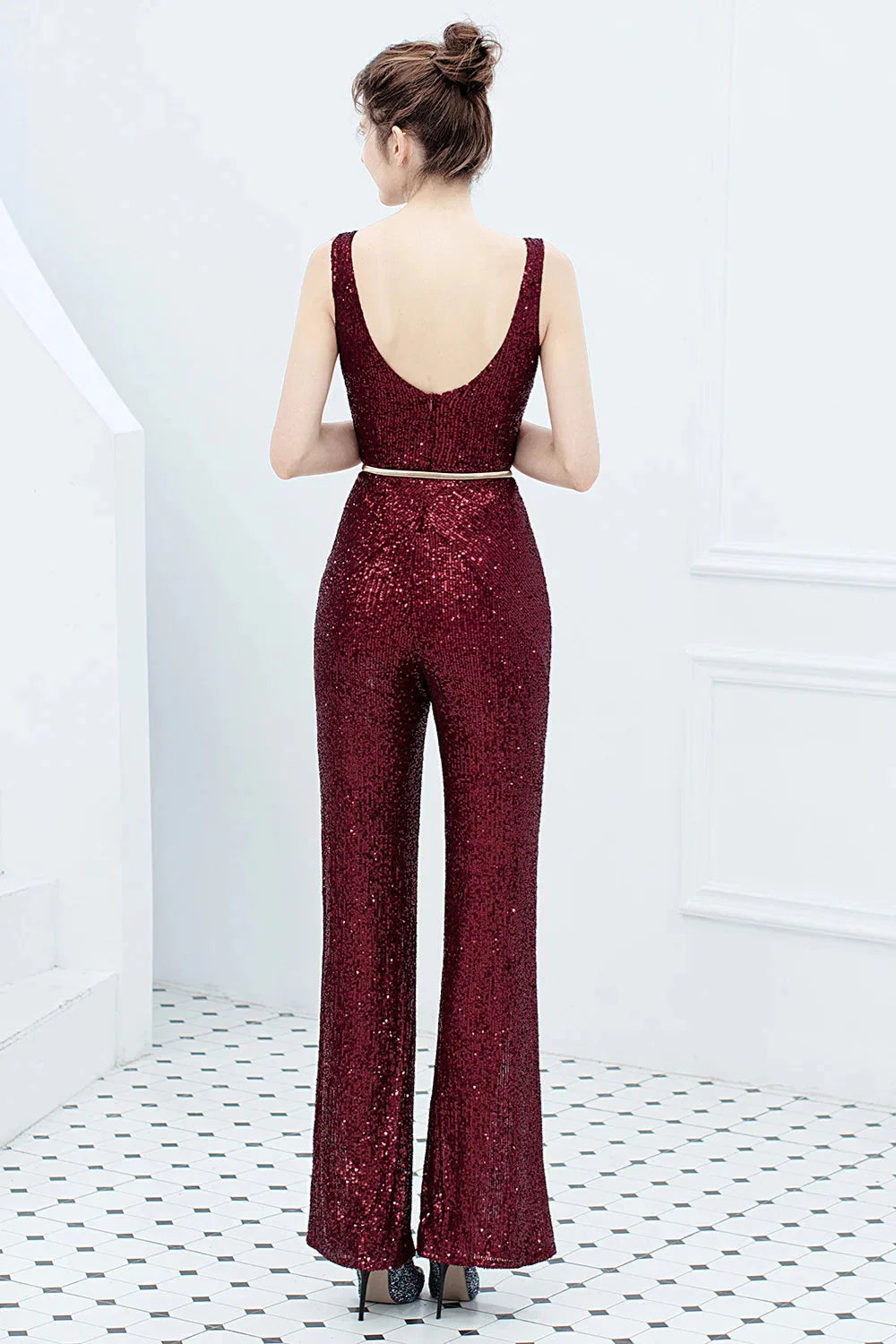 Fabulous V-Neck Sequins Evening Gown Sleeveless Jumpsuit