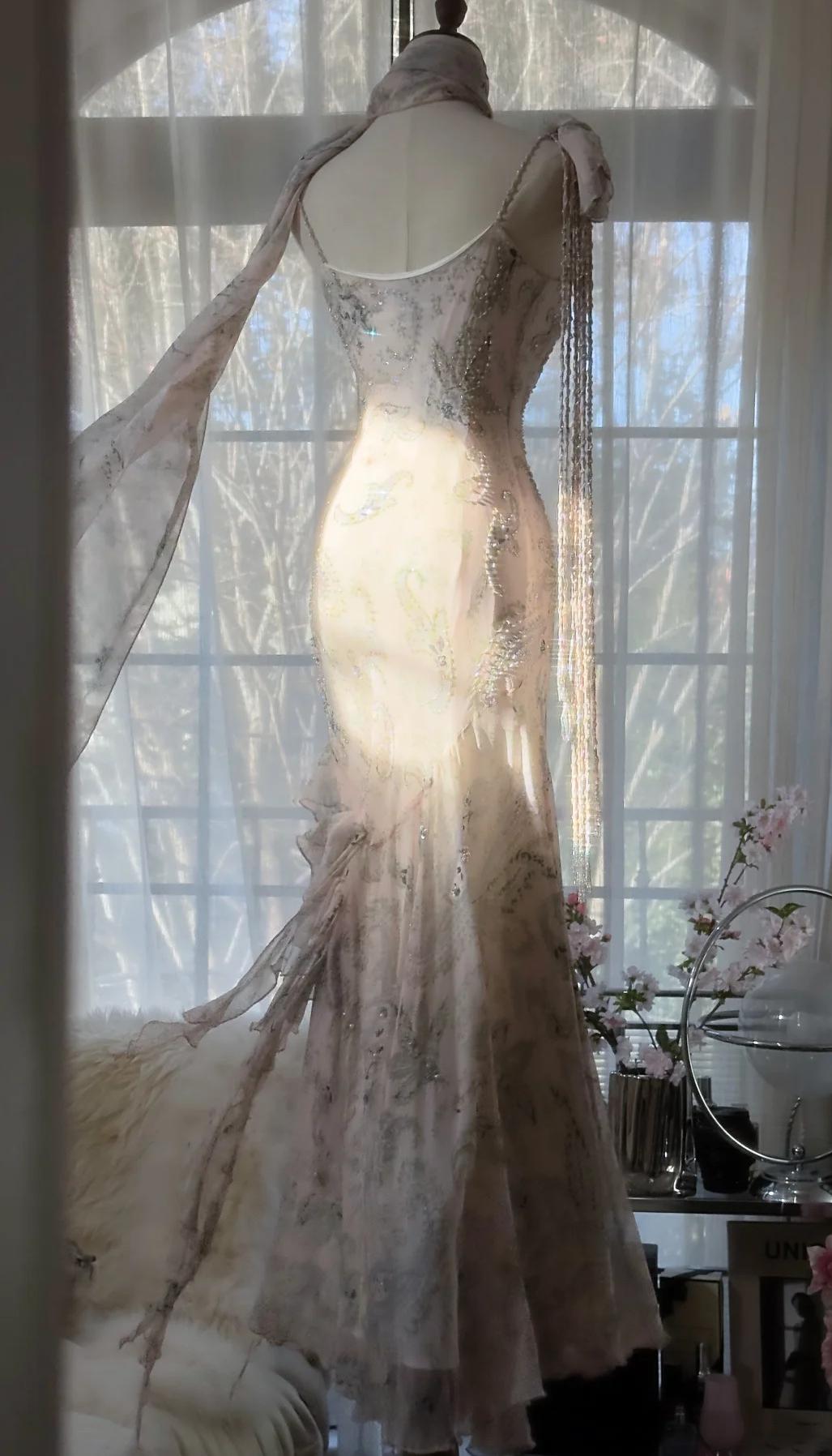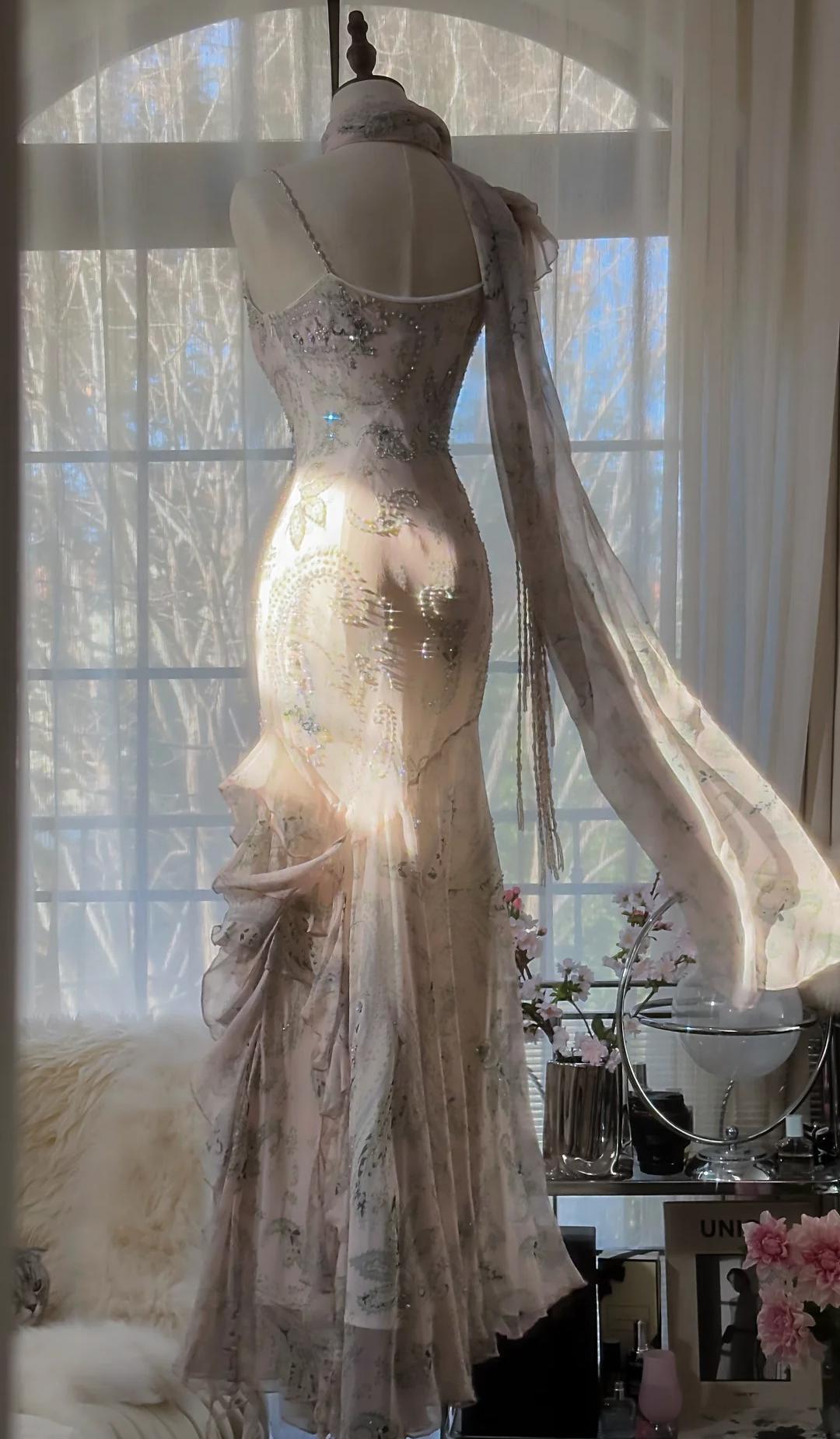 Fairytale Pink Beaded Chiffon Prom Dress🎐Vintage Mermaid Gown for Graduation&Quniceanera