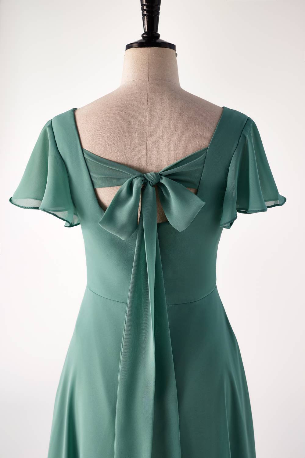 Flare mouwen eucalyptus chiffon lange bruidsmeisje jurk