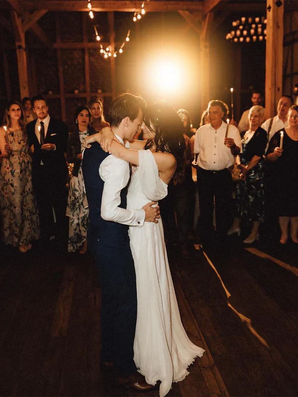 Glamorous A-line Wedding Dresses Backless Chiffon Bridal Gowns