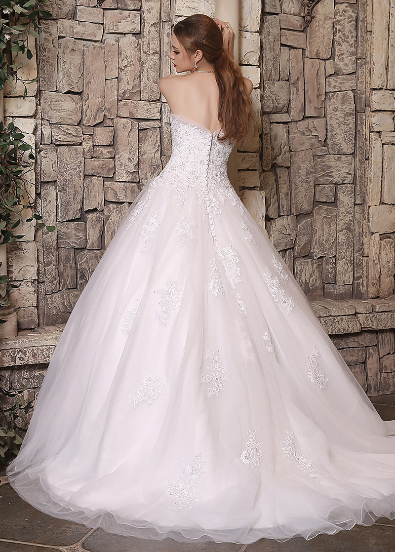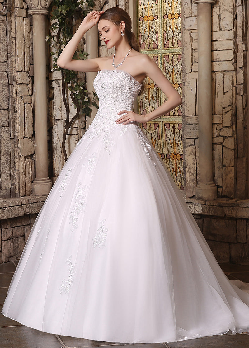 Silhouette: Princess, A-LineHemline / Train: Sweep / Brush TrainNeckline: Off ShoulderFabric: Tulle, LaceClosure: Zipper UPSleeve Length: Long SleeveWaistline: NaturalFully Lined: YesEmbellishment: AppliquesBuilt-In Bra: YesBoning: YesWedding Venues: ChurchTips: Professional dry cleaner only, Colors may vary slightly due to different monitor settingsTheme: Luxurious, RomanticWrap: No