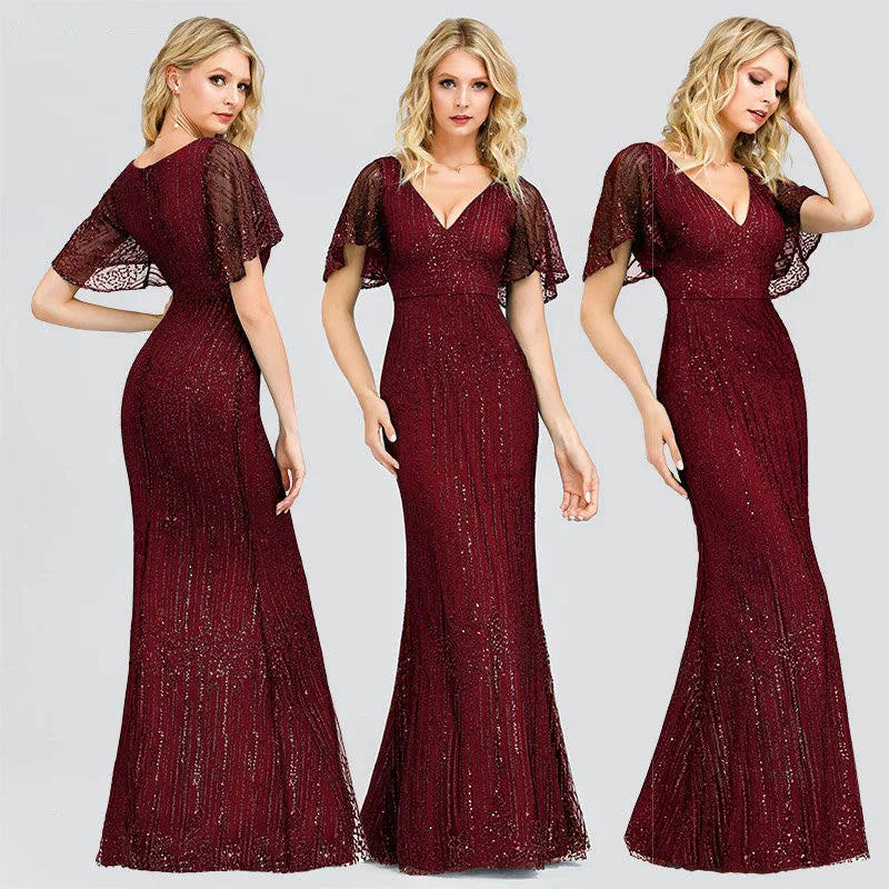 Features: Half sleeve, sequin, round neck, A-line, orindary shoulders, floor-length, long party gownsPerfect as evening party dress, wedding party dress, bridesmaid dress, formal party dress, prom party dress, beach dress, wedding guest dress, formal dress.etcSequin dress with 3/70 sleeves, the sequin top makes you...