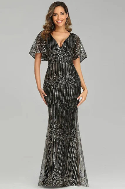 Women's Elegant Sequin Maxi Evening Dress - Black