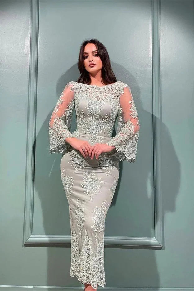 Glamorous Long Sleeves Mermaid Evening Dress With Lace Appliques