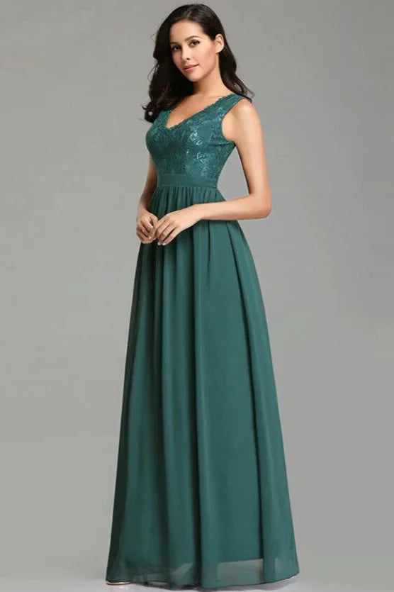 Glamorous V-Neck Sleeveless Lace Long Chiffon Evening Gowns